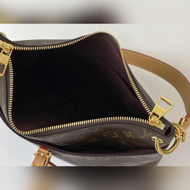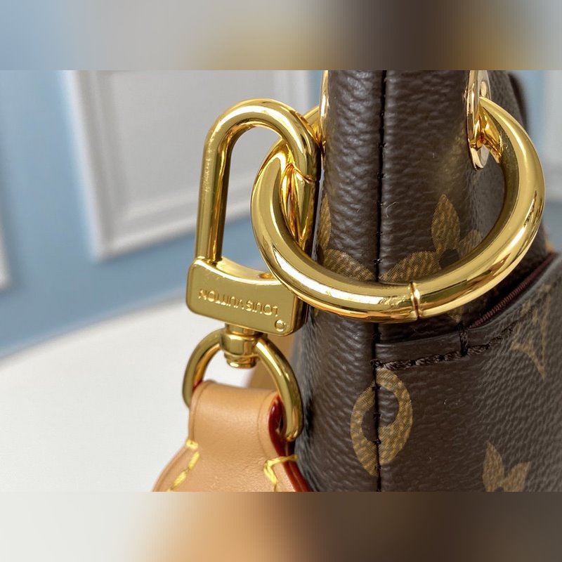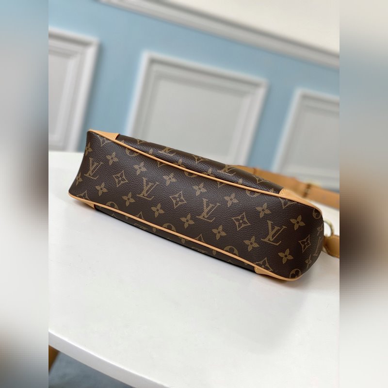 Retro ihletésű Monogram vászonnal és megerősített bőr sarkokkal. Állítható pánt vállon vagy keresztben hordáshoz, cipzár a holmik eléréséhez.