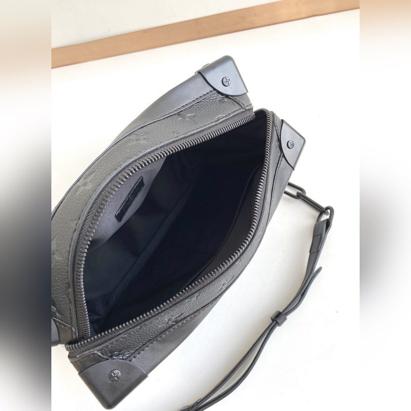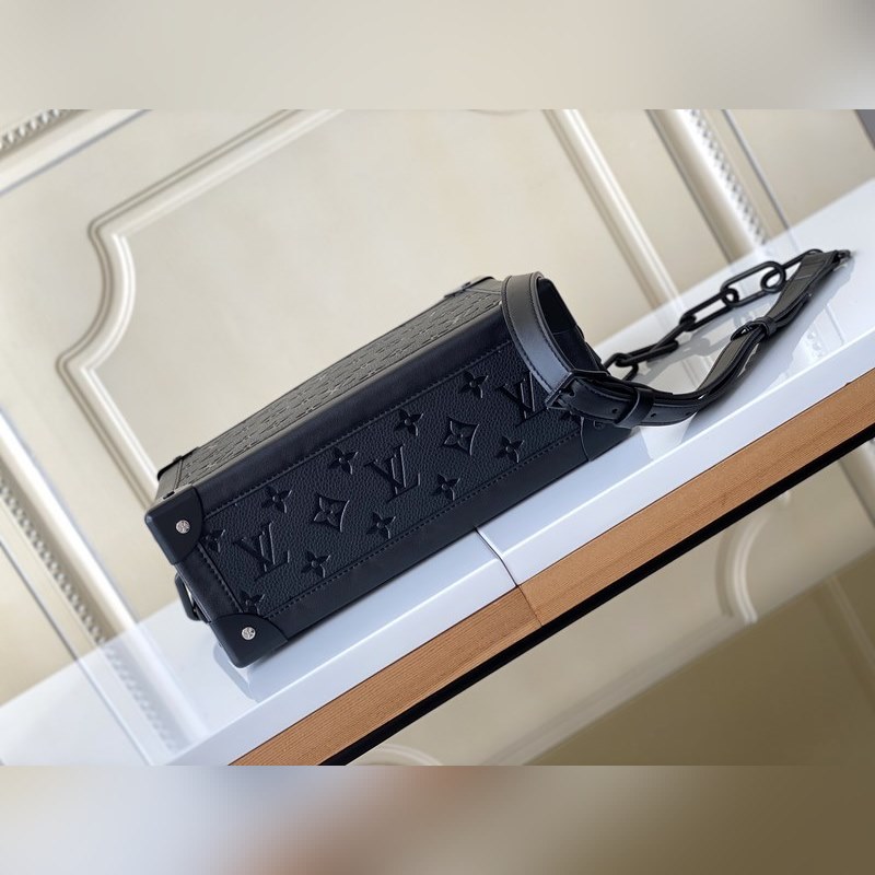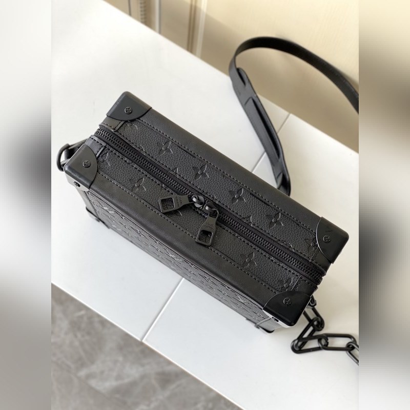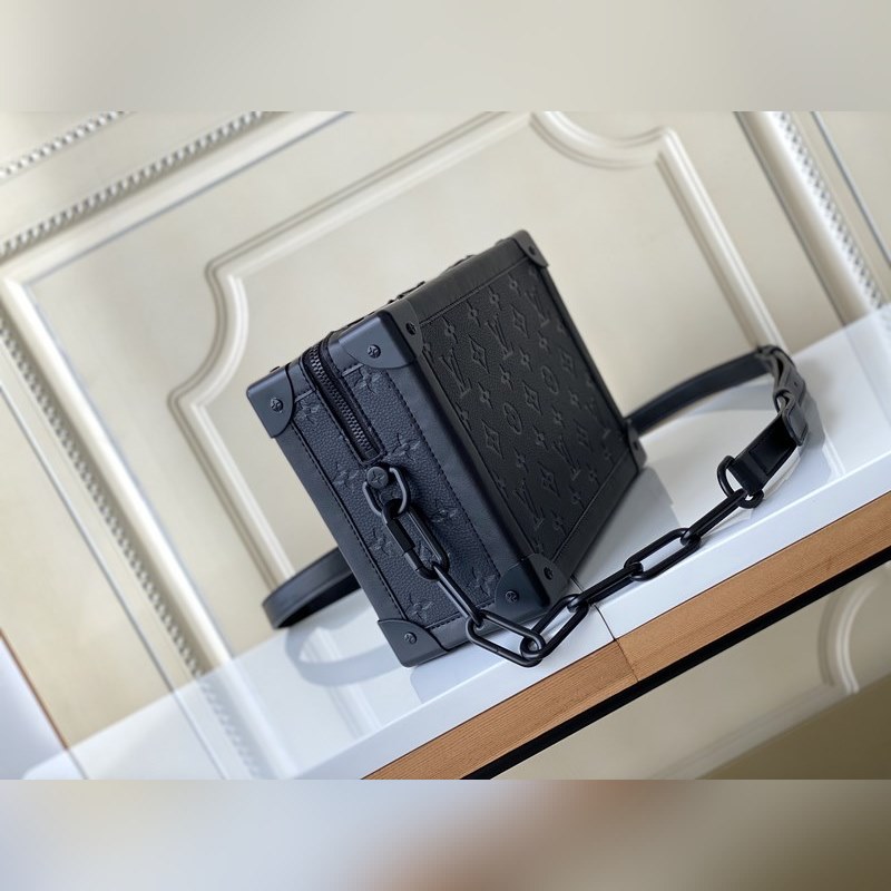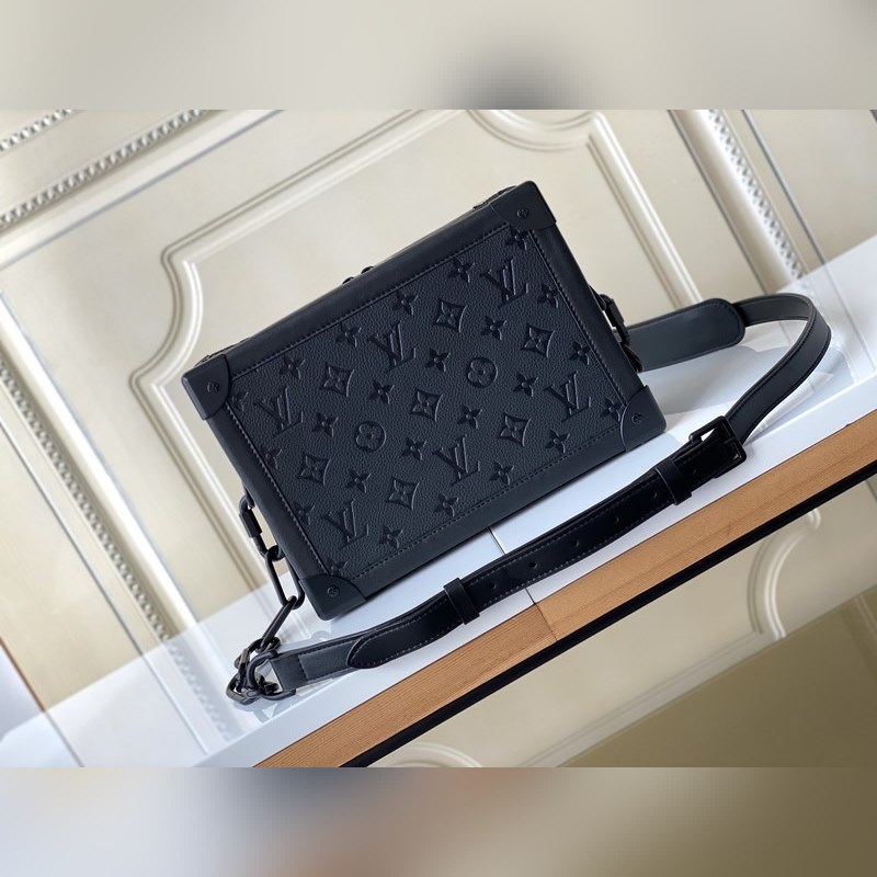 A Soft Trunk kézitáska egyesíti a monogramos dombornyomott Taurillon bőrt, a matt cipzárakat és az elegáns vállpántokat, újraértelmezve a hagyományos futártáskát. A megerősített sarkok és a négyzet alakú forma lassan felfedi a Louis Vuitton csomagtartó-készítő örökségét. Taurillon marhabőr-szövet bélés-marhabőr kárpit-matt fémrészek-állítható és levehető bőr vállpánt-cipzárral zárható-belső foltos zseb