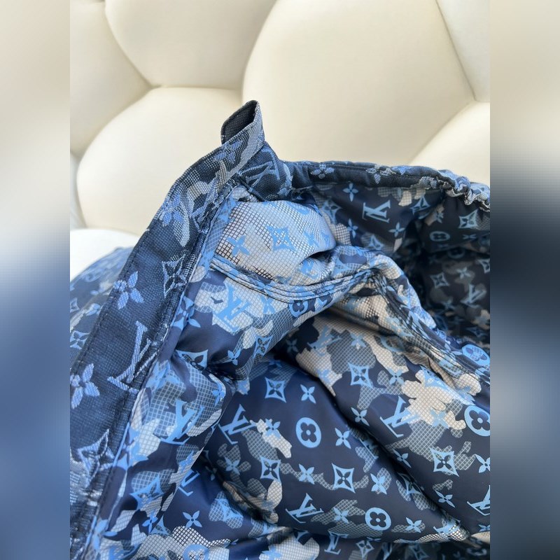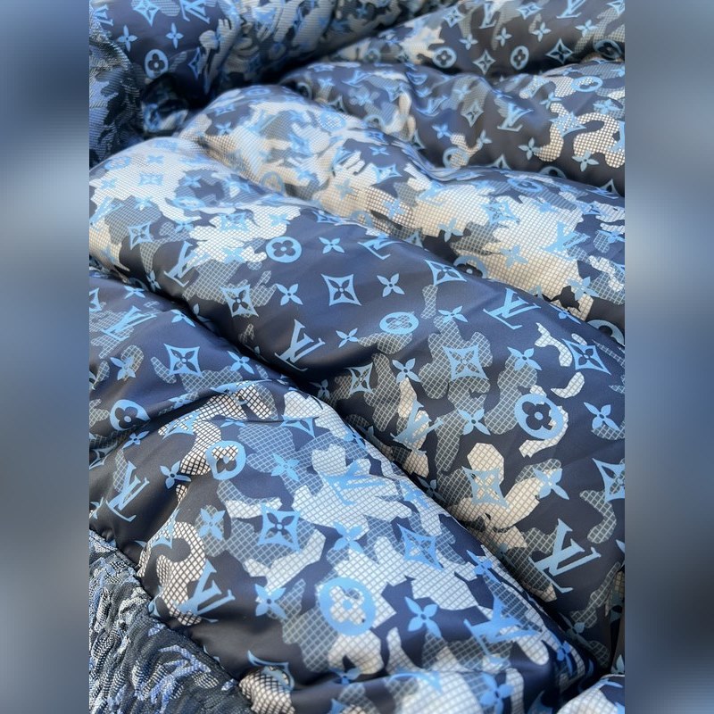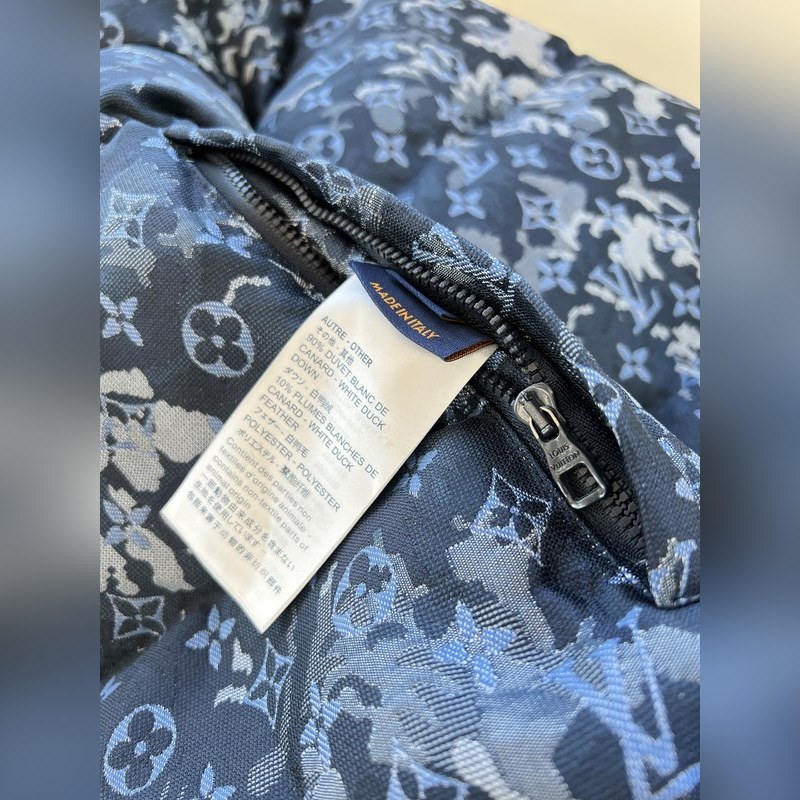 LV Ez a kapucnis kabát férfiak és nők számára egyaránt elérhető. Az őszi-téli sorozat Monogram Tapestry mintája jacquard mintává alakul, a mandzsetta és a derékrész rugalmas dizájnja pedig sportos stílust kölcsönöz. Az oldalzsebek cipzárral záródnak, a központi cipzár T-láncos cipzárhúzóval van ellátva. A 90%-ban fehér kacsapehellyel töltött jacquard szövés rendkívül nehéz. Csak az anyag testreszabása három hónapig tartott. A hardver kiegészítők mind csúcsminőségűek. Az általános stílus egyenes és széles. Ez egy ritka kabát stílussal és textúrával. Méretek S-M-L-XL