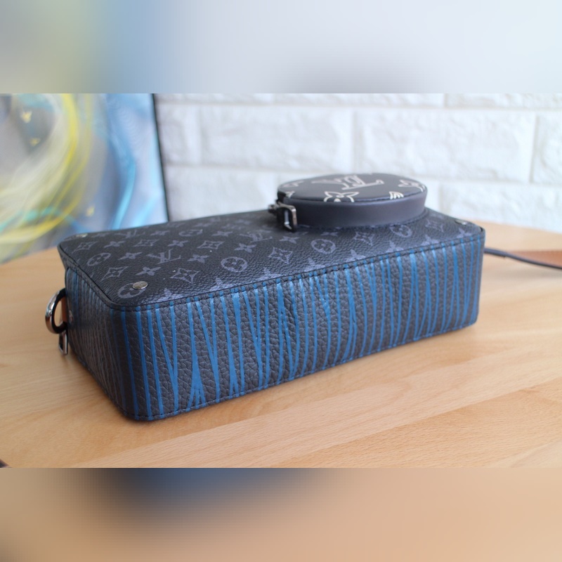 A Monogram Eclipse vászon kompakt formája cipzáras rekesszel rendelkezik az apró tárgyak, például mobiltelefonok és fejhallgatók tárolására. A LV betűkkel díszített bőr pénztárca utalás a Virgil Abloh által a 2020-as őszi/téli kollekcióban bemutatott patchwork művészetre. Monogram Eclipse bevonatú vászon és marhabőr-marhabőr és szövet kárpitozás-szövet bélés-fém részek-cipzáros záródás-külső cipzáras érme pénztárca-belső patch zseb-levehető, állítható vállpánt Méret: 23x13x6CM40