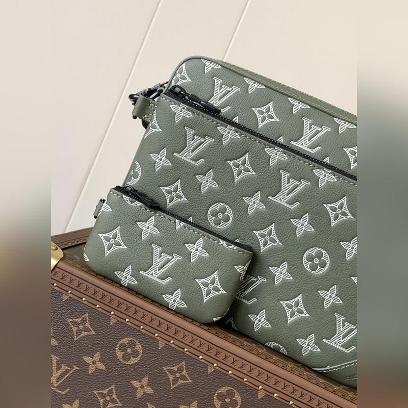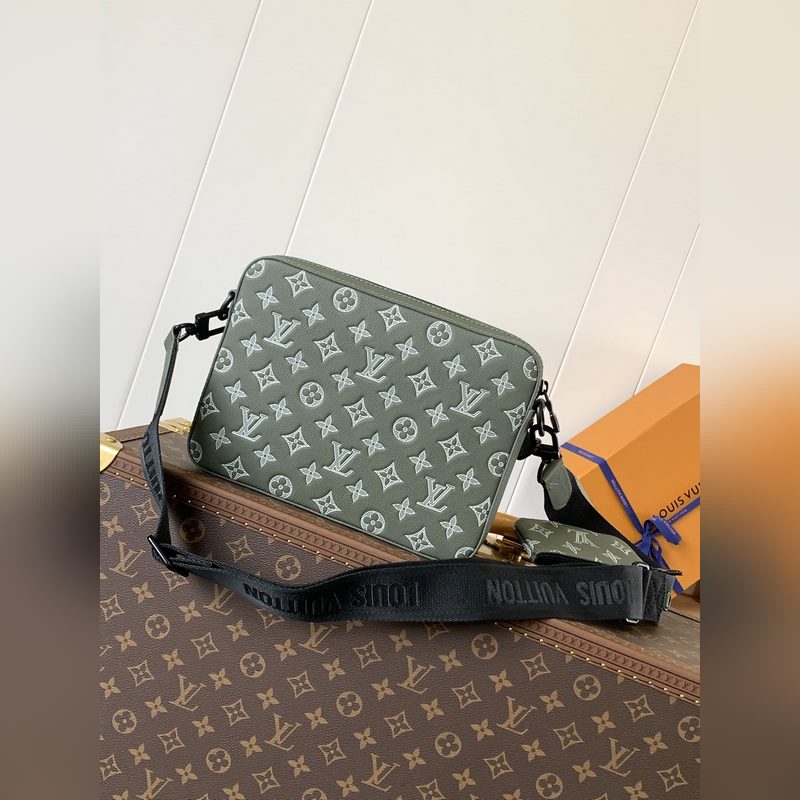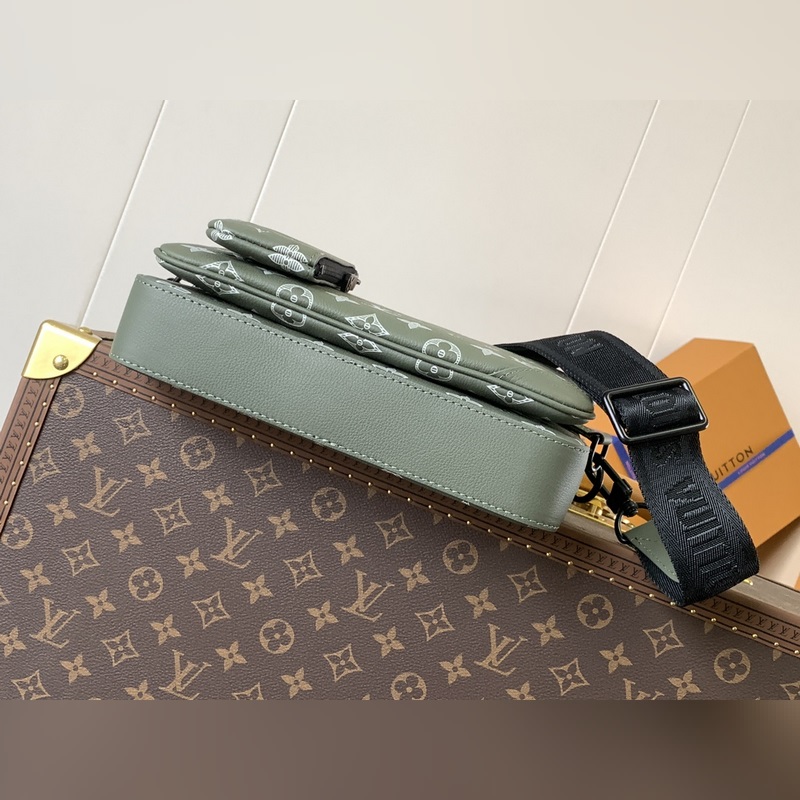 M12490 Top eredeti egyetlen kódváltó chip Új háromrészes férfi futártáska sorozat Ez a Trio futártáska Monogram Eclipse Reverse vászon és szemet gyönyörködtető részletekkel három az egyben dizájnt hoz létre. A cipzáras elülső zseb és a vállpántnál lévő érmés pénztárca egyaránt levehető, így a fő táskával gazdagítja a funkcionális kialakítást. Az állítható és levehető szövet vállpánt Louis Vuitton logóval díszített, kényelmes vállélményt biztosítva.
