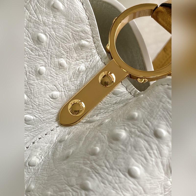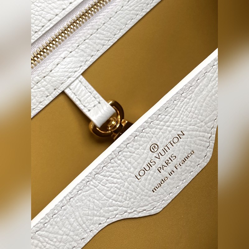 Eredeti anyaga M24714 fehér (dinamikus chip változat) bőr olasz A-osztályú bőr, ami minőségben, vasalatban, szövetben, kézimunkában, olajszegélyben, és A-kategóriás termék. Mérete: 27x18x9cm