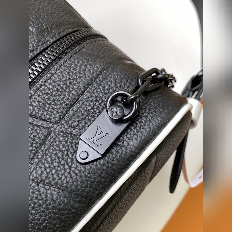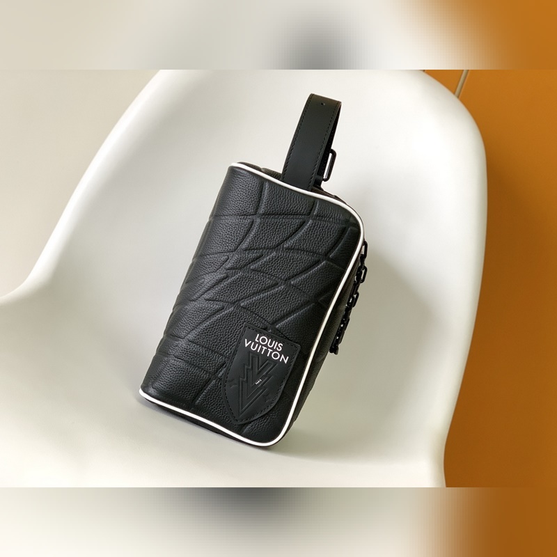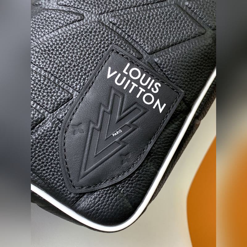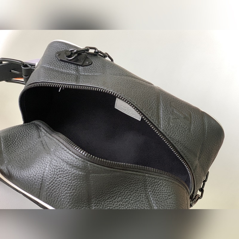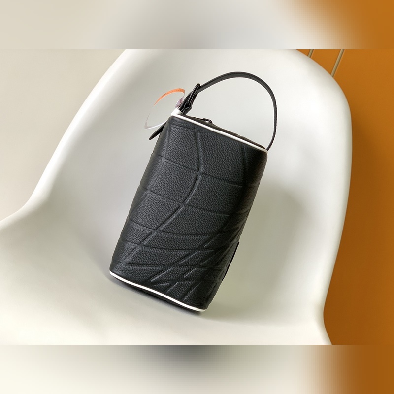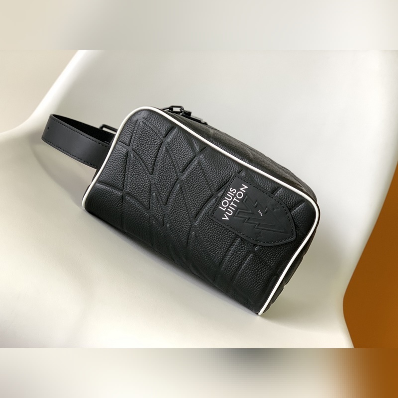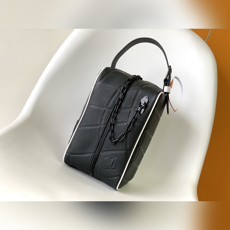 M81849. 2023-as világbajnokság közös sorozat Ez a Dopp Kit piperetáska Taurillon bőrből készült A dombornyomott minta a hálót LV-címkét azonos színű futballra emlékezteti Állítható bőr fogantyú a könnyű hordozhatóságért Méret: 15x24x15cm