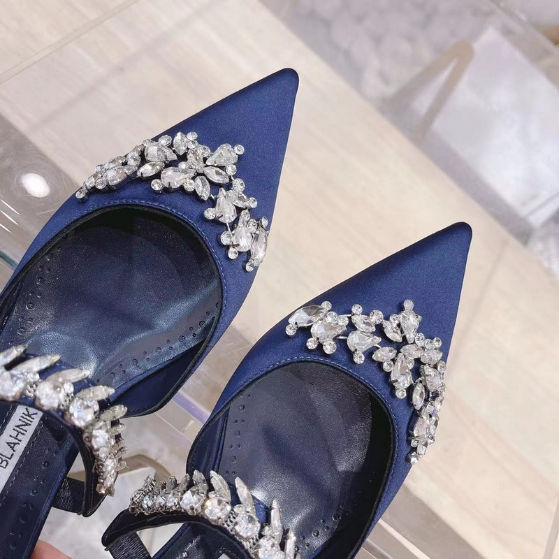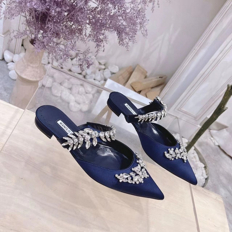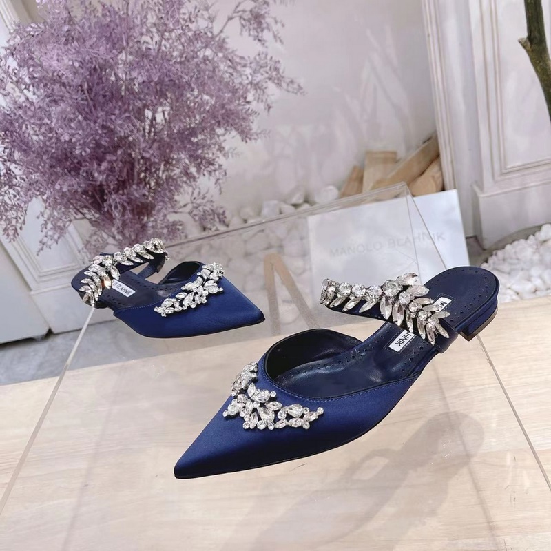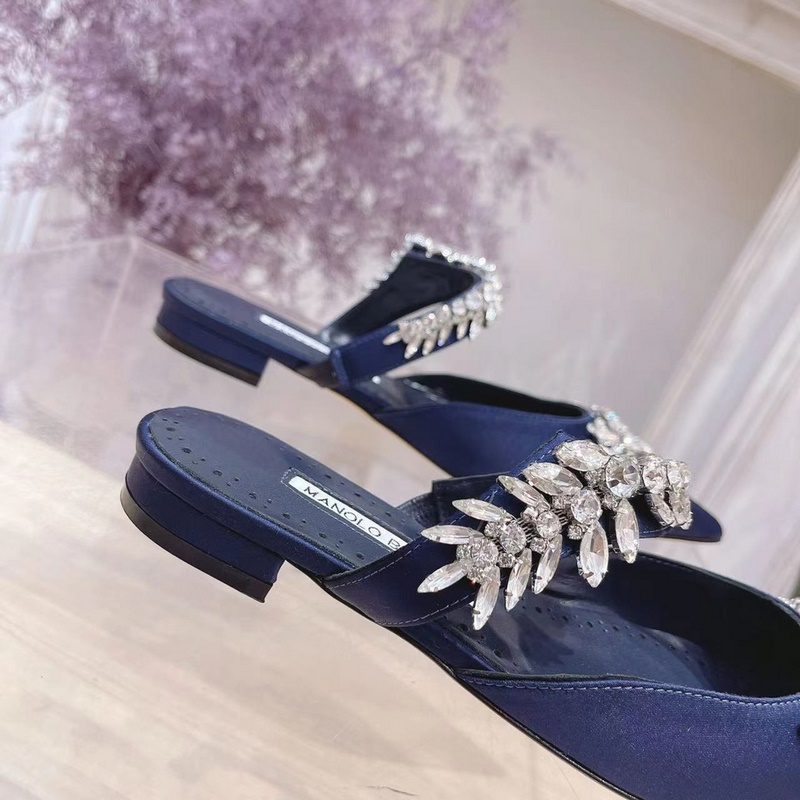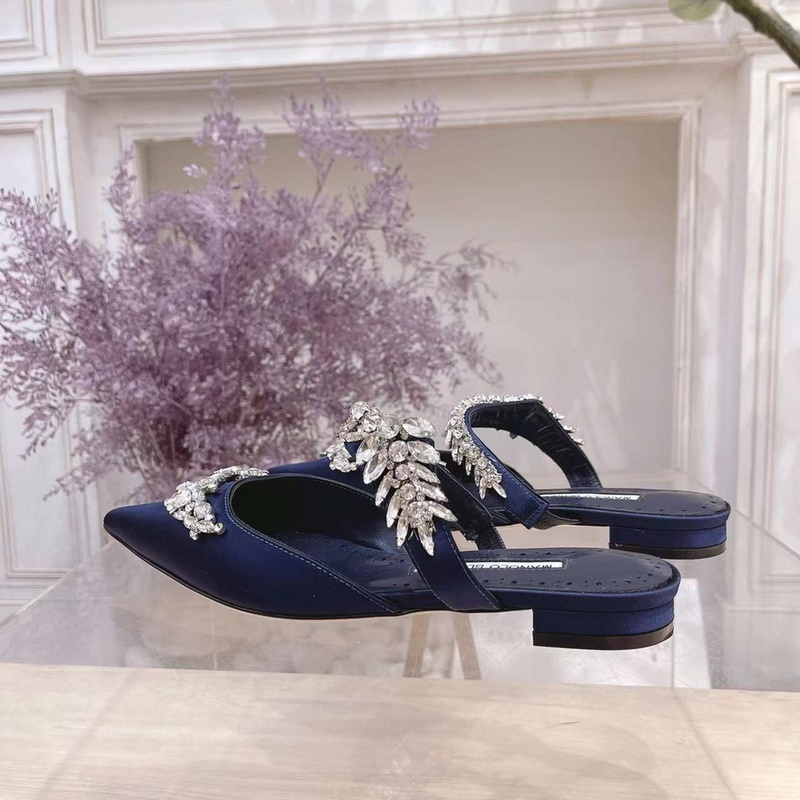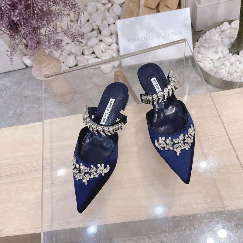 Manolo Blahnik Lurum Swarovski Crystal Silk Satin Mules Heels