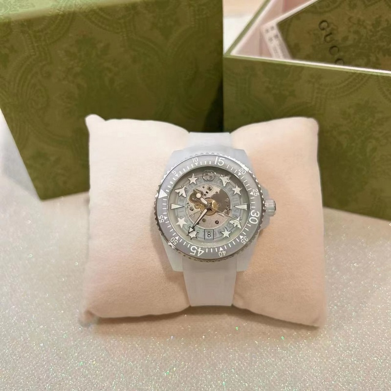Újonnan került piacra a GUCCI eredeti új modellje, a Gucci Dive sorozatú óra, melyet búváróra ihlettek, méhek, csillagok és egyéb elemek díszítik az átlátszó számlapját, hiteles emlékeket idézve.