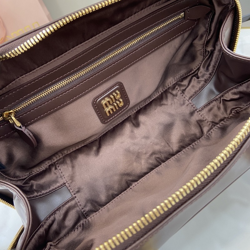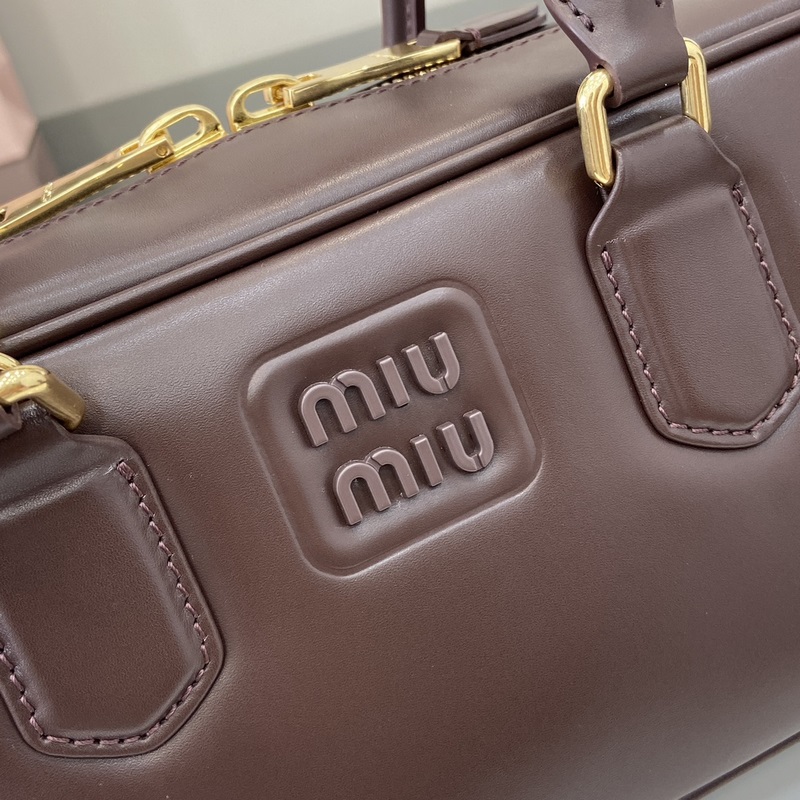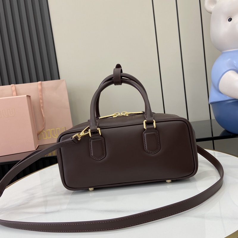 Új miumiu Miu Miu Arcadie marhabőr közepes (27 cm) bowling kézitáska/crossbody táska ~ Cognac marhabőr