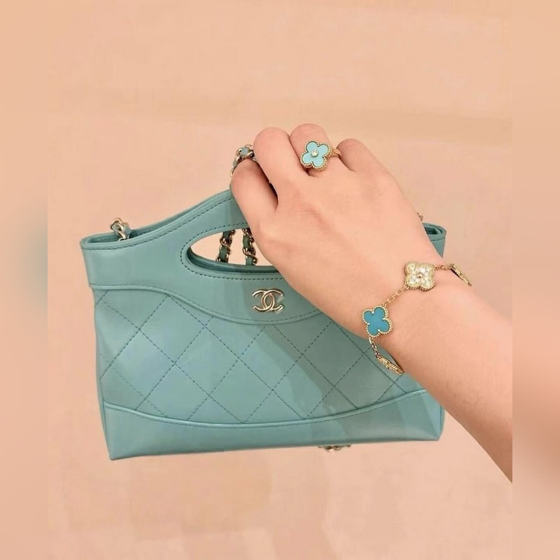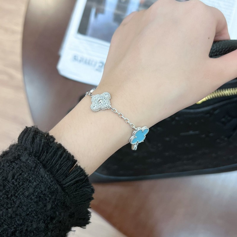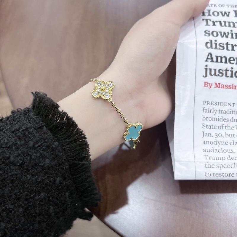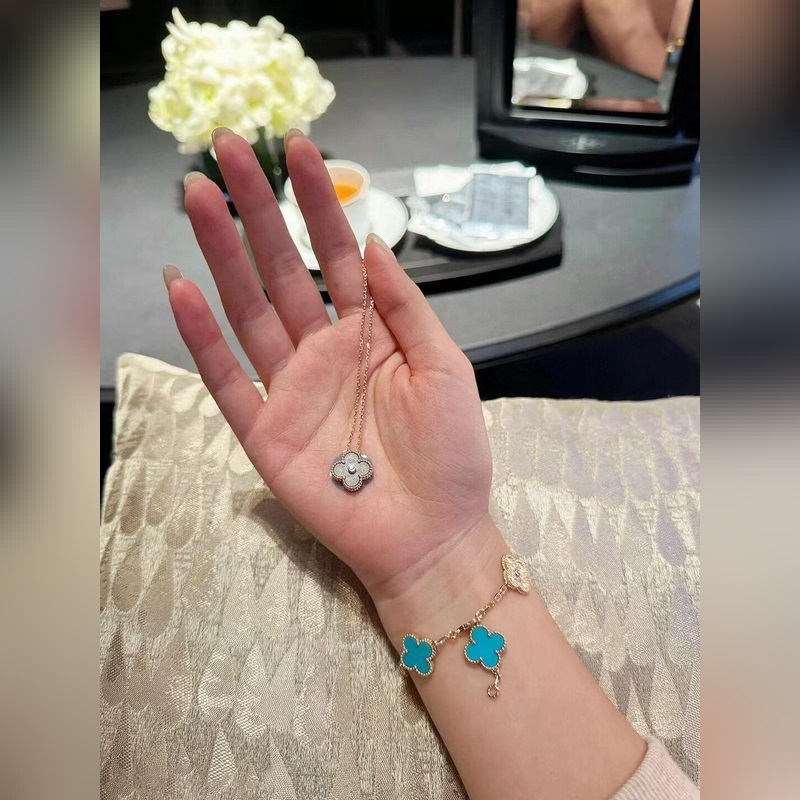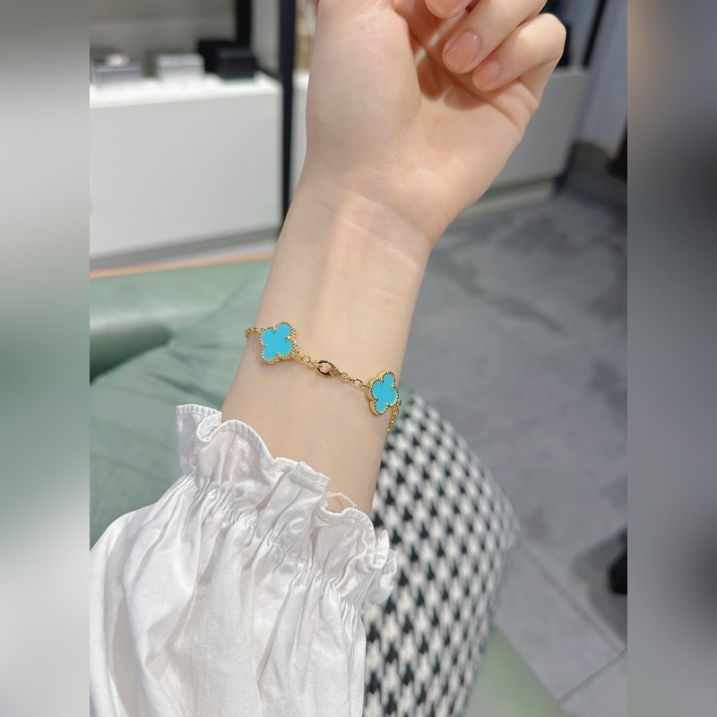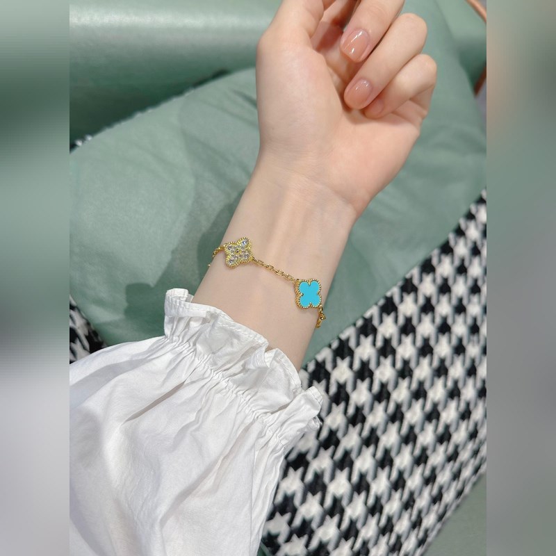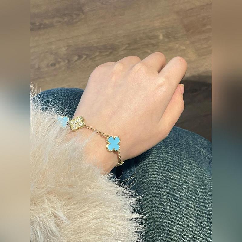 -Kép viselése-Van Cleef&Arpels gyémánt türkiz négylevelű lóhere ötvirágos karkötő
