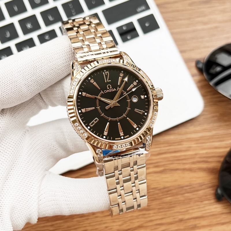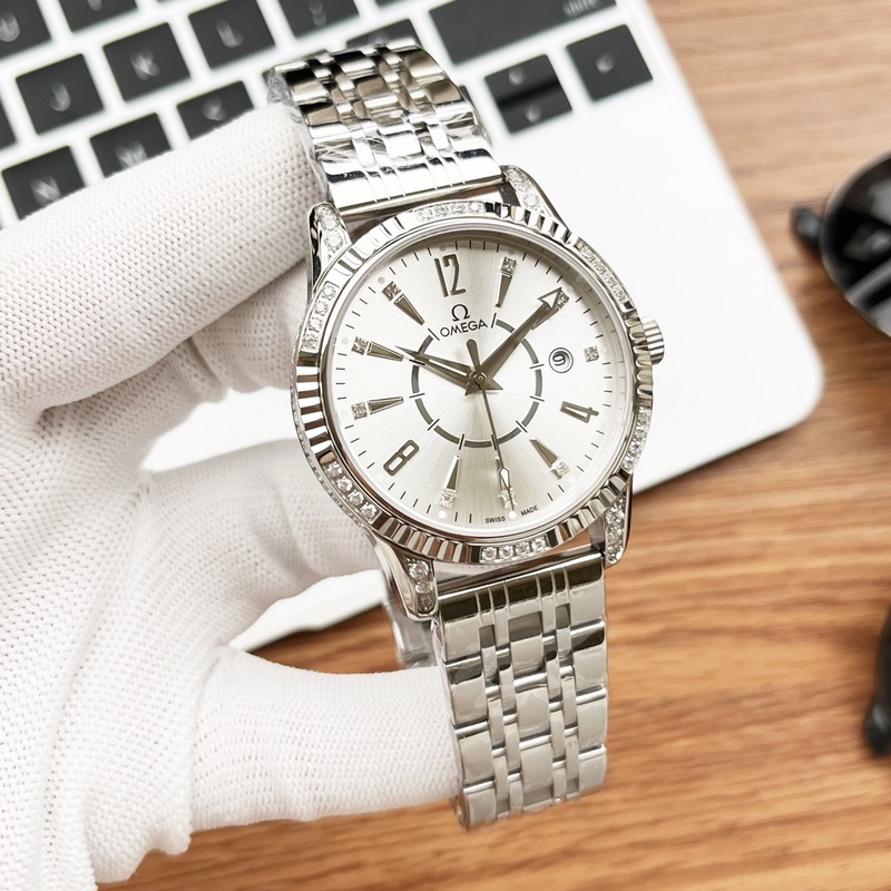 Omega butik férfi karóra, klasszikus háromkezes dizájn, nemes és elegáns, úri stílusú, kitűnő minőség, városi dögös árusítás. Használjon importált Citizen mechanikus szerkezetet (javítás nélkül), top 316-os rozsdamentes acél tokot és szíjat, zafír szupertükört, 40*12 méret