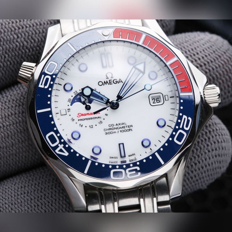 Az Omega-OMEGA legújabb Seamaster órája szuper fényerővel és 9 számjegyű valódi holdfázissal rendelkezik. Importált teljesen automata mechanikus mozgást használ, javítás nélküli, több mint 48 órás energiatárolást és 50 méteres vízálló mélységet biztosít.