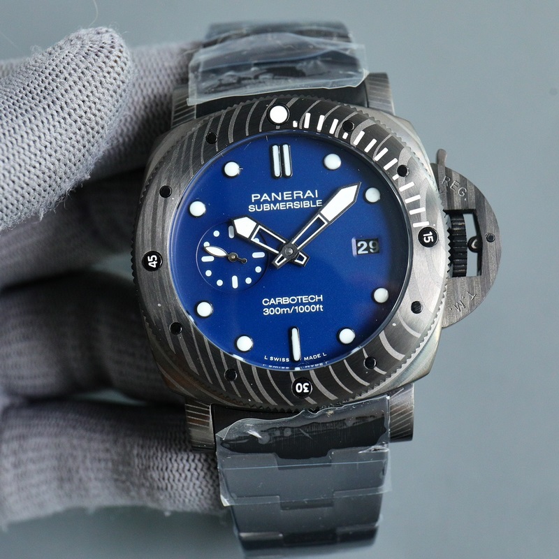 A V7 Panerai új MERÜLŐ BMG-TECH ─ 47 mm-es Merülő sorozatú robbanó üreges órája importált 2555-ös automata mechanikus szerkezettel, a Panerai új BMG-TECH anyagából, szuper nagy szívóssággal és karcállósággal. Minden óra egyedi. A kerek skála és az üreges mutatók jól felismerhetőek, és szuperfényes Suer-LumiNova bevonattal vannak bevonva, így biztosítva, hogy az időinformáció világosan olvasható legyen sötét környezetben is.