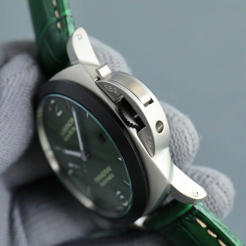 A Panerai PAM01036V8 verzió a legújabb bevezetés és exkluzív akció. A tökéletességre való törekvés érdekében ez egy továbbfejlesztett változat, szilárd kidolgozással és stabil minőséggel. Beváltja az elvárásokat. A továbbfejlesztett replika változat átmérője 44 mm, a tokgyűrű pedig az eredetihez hasonlóan lecsavarható. Közönséges és p9001 mozgások közül választhat. Szilárd kidolgozással és stabil minőséggel megfelel az elvárásoknak.