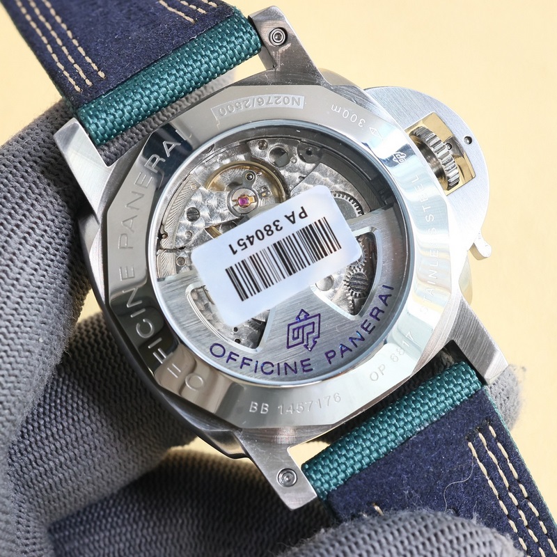 Panerai Modell PAM01157 Márka Panerai sorozat VAGY Mozgásmodell Sirály 2555 Mozgalom típusa Automata mechanikus Lengéscsillapító Incabloc lengéscsillapító Ház átmérő 44 mm Tokvastagság 16,2 mm Számlap szín Fekete Kapocs típusa Trapéz csat 12 oldalon csavarozható DLC bevonat Kalázniumsz hátulsó titaáz titán Számlap anyaga Fekete gradiens számlap, arab számok és időjelzők fehér Super-LumiNova TM világító bevonattal, zöld világító kijelző Szíj anyaga Újrahasznosított PET gyanta szövet fehér varrással;