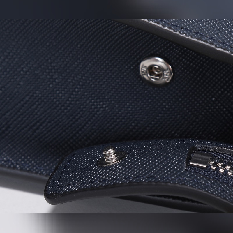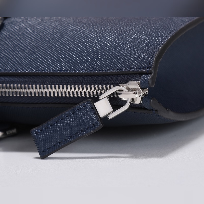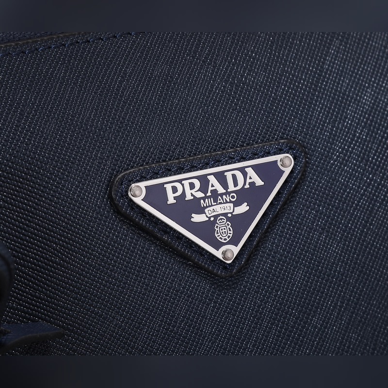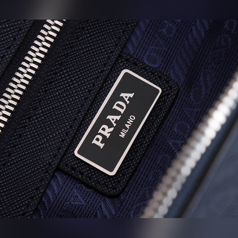 Ez az egyszerű táska ötvözi a modernizmust és a klasszicizmust, háromszög alakú logóval díszítve, lapos bőr fogantyúkkal, zománcozott háromszög alakú fém logóval az elején, cipzárral, belső cipzáras zsebbel, foltos zsebbel és kis foltos zsebbel, Prada logóval hossz <br0 cm szélesség 4 cm, méretek: 9 cm3 cm szélesség 4 cm.
