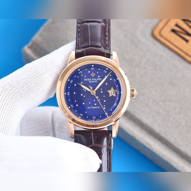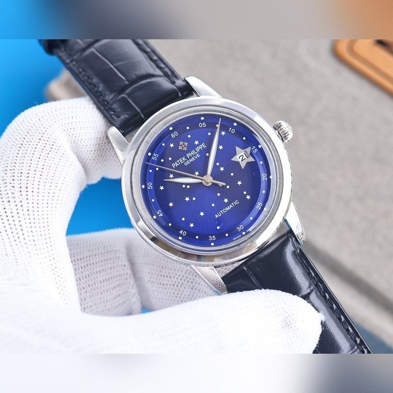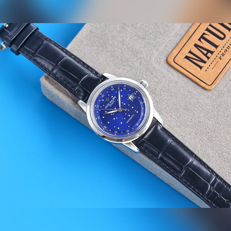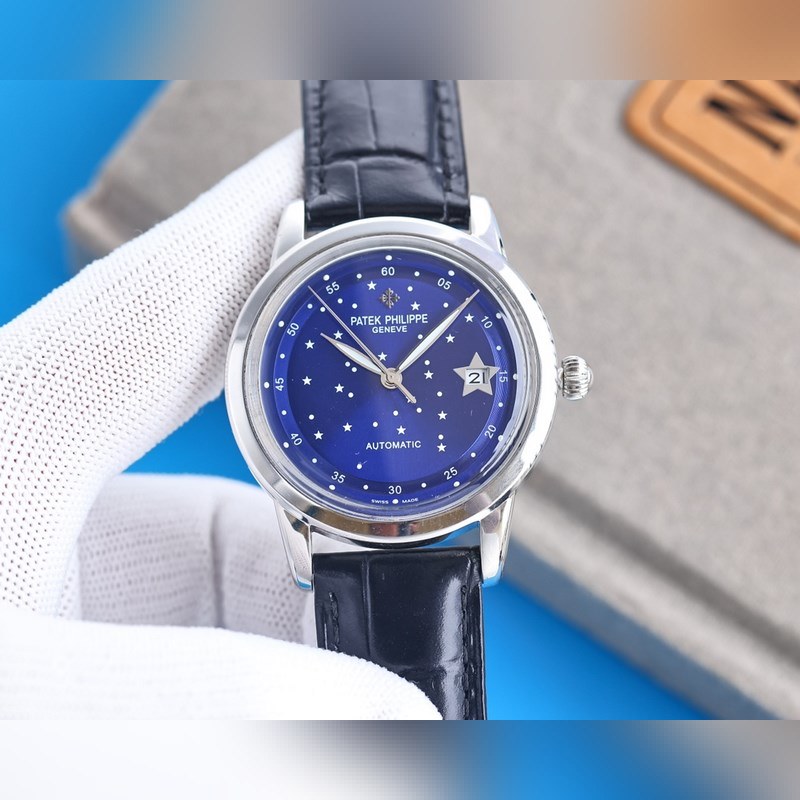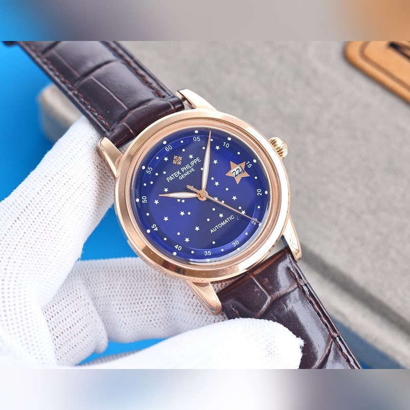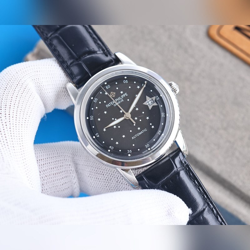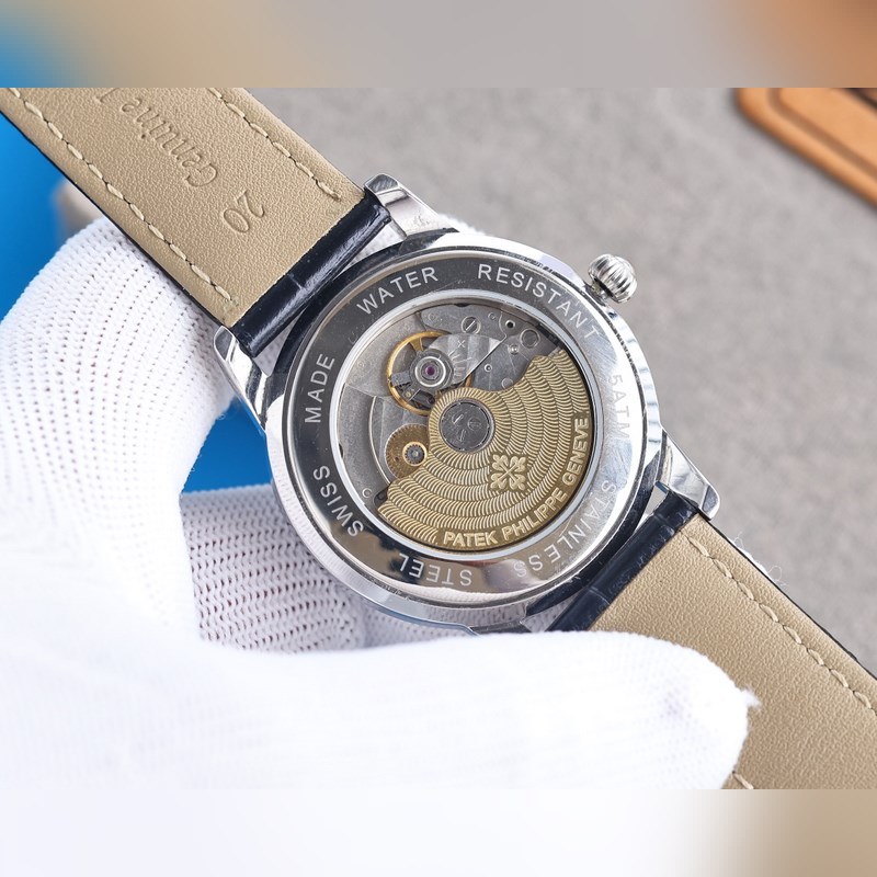 A legújabb edényfedelű üveganyag, a számlap szuper világító fényt használ, erős 3D sztereoszkópikus érzékkel rendelkezik, ultravékony kidolgozású, és 40 mm átmérőjű. A 3 stílus az eredeti 9015-ös szerkezetet használja, óránként 28 800-szor, és nulla javítási minőséggel. 4 stílust az olasz marhabőrrel párosítanak, hogy a csukló fittebbé és kényelmesebbé váljon. 5 Az óracsaton a „PATEK PHILIPPE” klasszikus logója van gravírozva, amely nagyvonalú és előkelő.