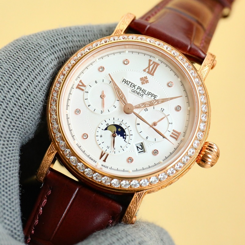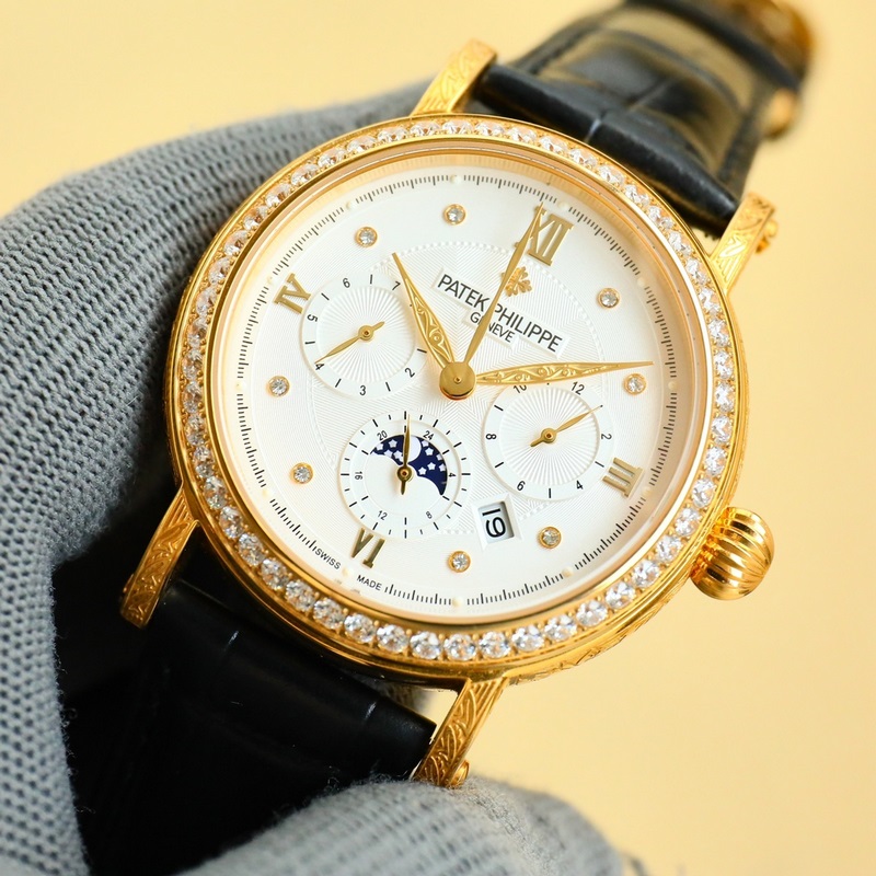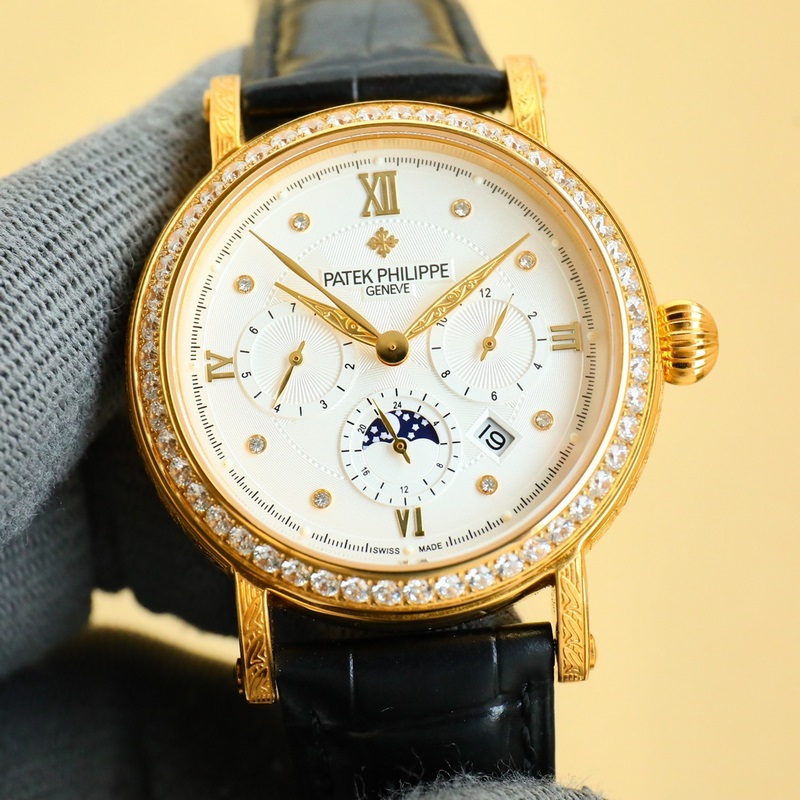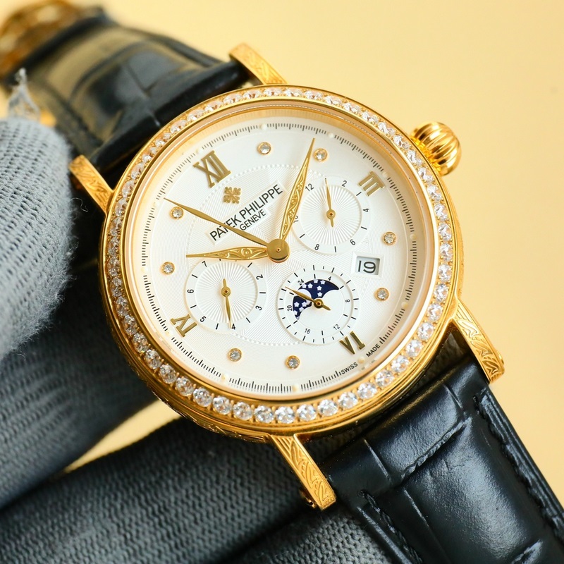 Patek Philippe lenyűgözően debütált, 42 mm-es átmérőjével, amely a legtöbb férfi csuklójára alkalmas. Nagyon üzletszerű és hétköznapi. Az egész óraház kézzel faragott mintákkal, ami erős vizuális hatást kelt és felejthetetlen. A tényleges textúra szebb.