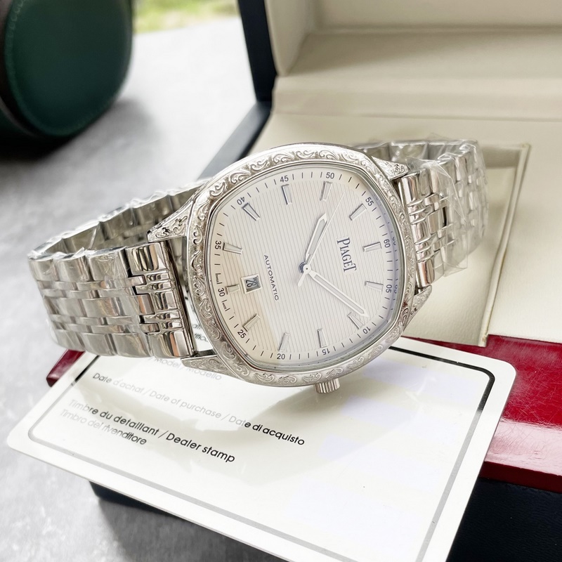 Piaget férfi karóra, klasszikus háromkezes dizájn, nemes és elegáns, úriember, kitűnő minőség, dögösen eladó a városban. Teljesen automatikus mechanikus mozgást alkalmaz, felső 316 rozsdamentes acél ház, importált borjúbőr szíj, ásványi szupertükör, 40 * 13 méret