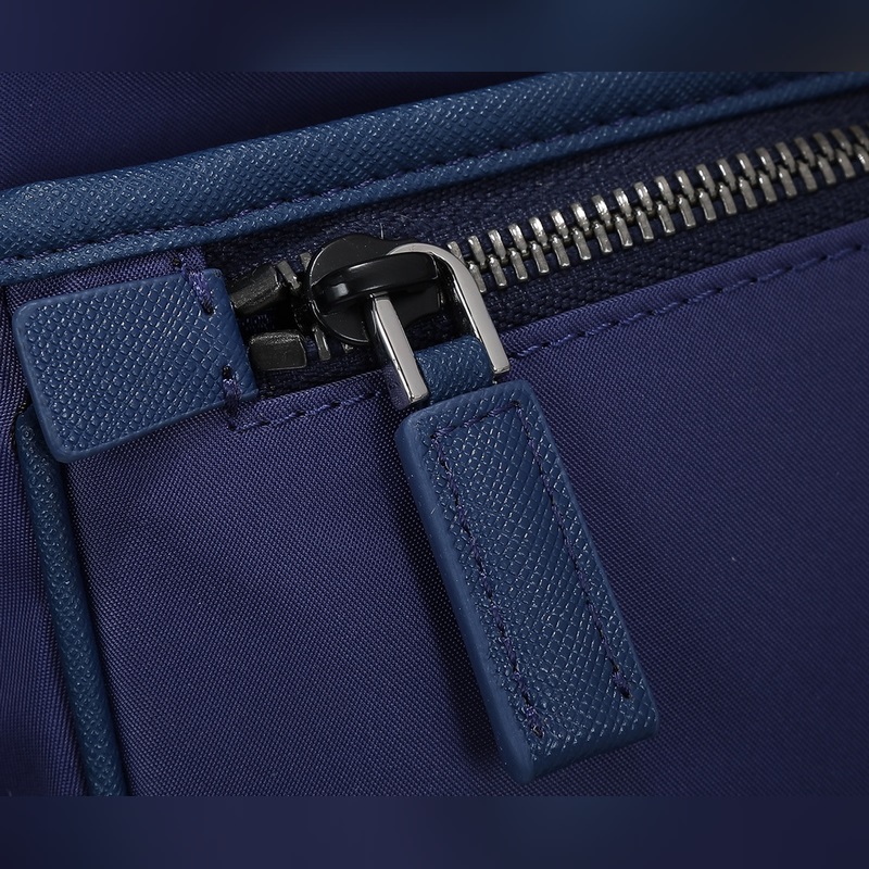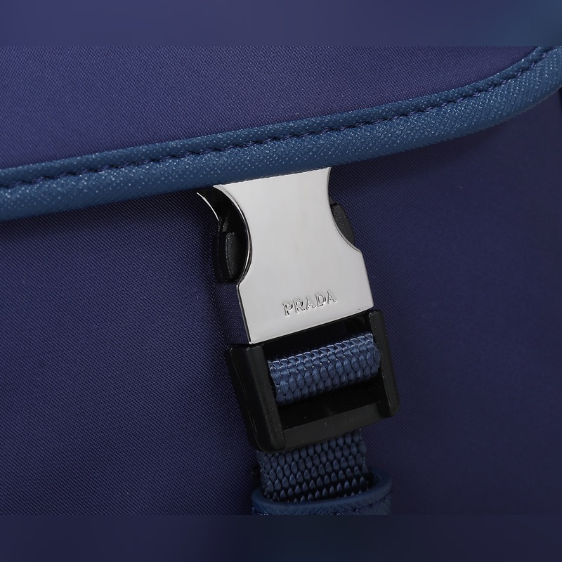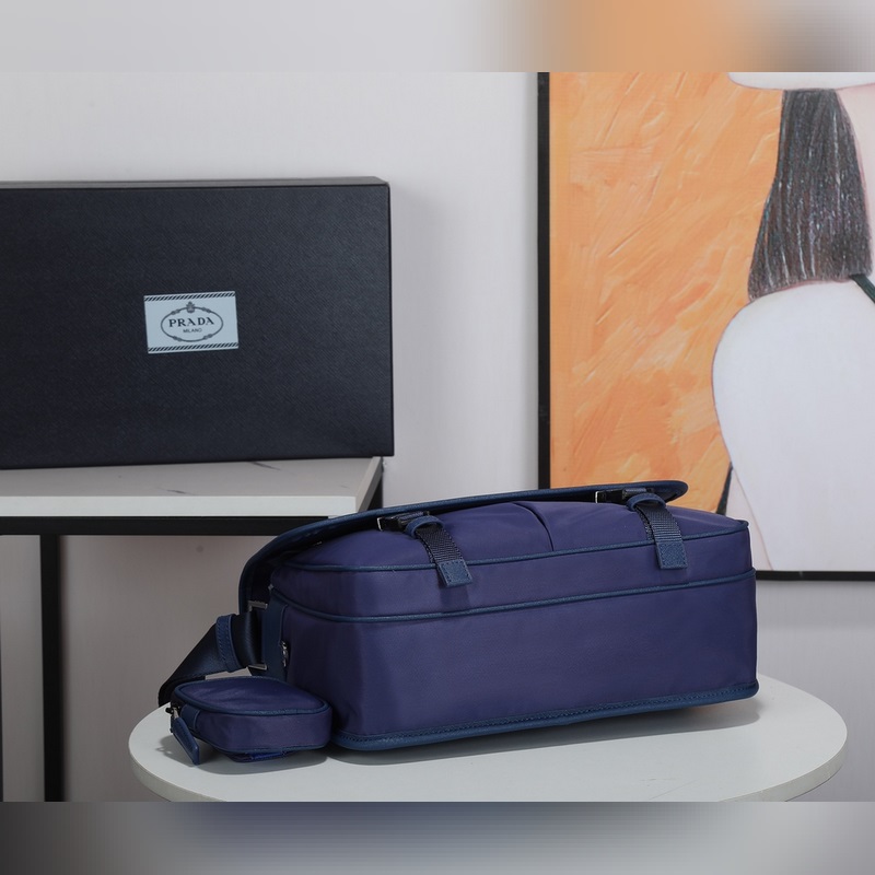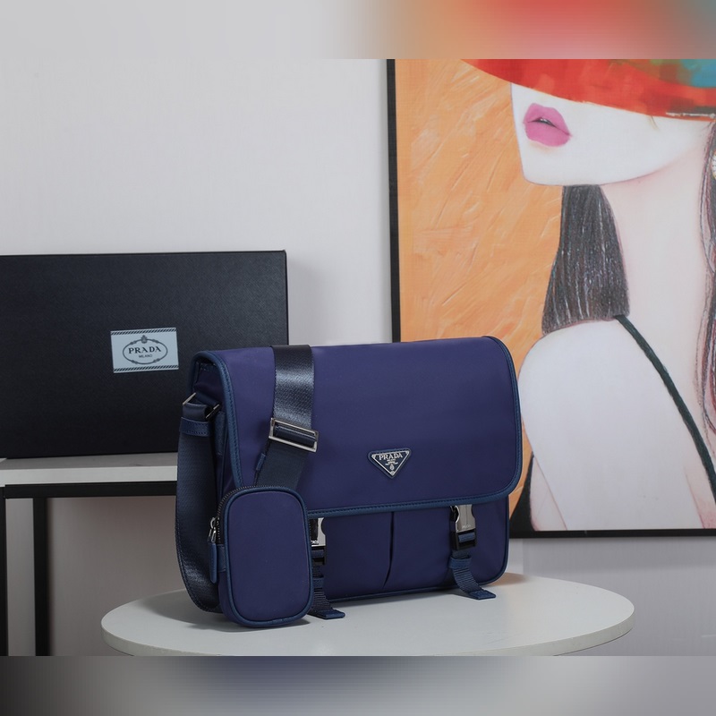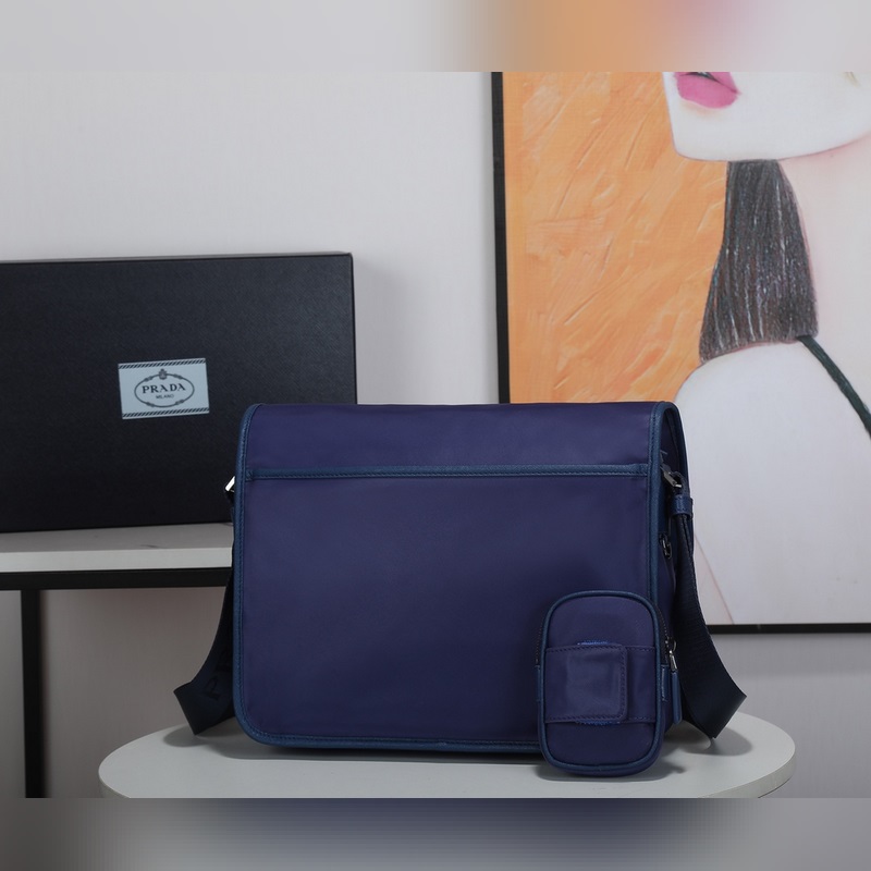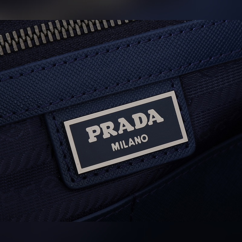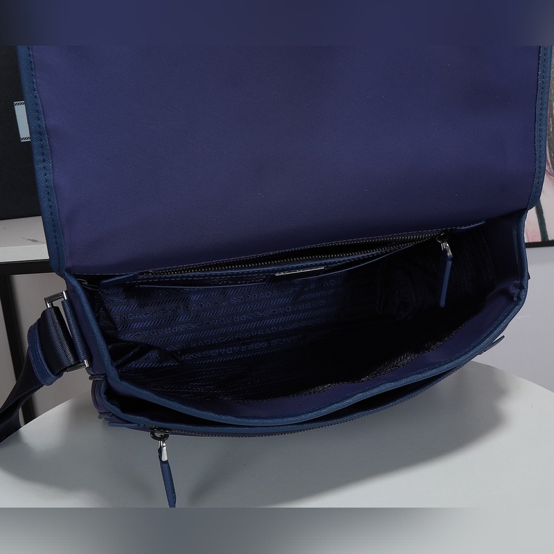 Ez a nylon füles kézitáska klasszikus Saffiano bőrdíszítéssel, két oldalsó csattal és az ikonikus háromszög alakú fém logóval díszítve, divatos dizájnstílust mutatva. Importált nylonból és Saffiano bőrből készült, két elülső zseb, melyek közül az egyik egy cipzáras hátsó cipzáras zseb, két belső mobiltelefon zseb, valamint állítható nylon logós jacquard vállpánt. Ez egy klasszikus és divatos futártáska, amelyet a férfiak imádnak.
