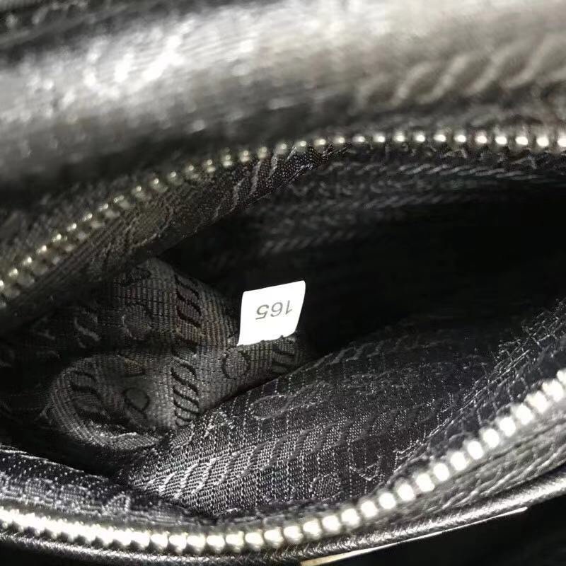 Egyetlen bőr fogantyú Állítható szövet vállpánt, fém vasalat, háromszög alakú zománc logó Felső szárny (csattal vagy mágneses zárással) Egy cipzáras külső zseb Egy cipzáras belső zseb, PR*DA logós bélés Méretek: 26×15×32CM Stílusszám: 1BZ0396 Kódszám 81: SG0302