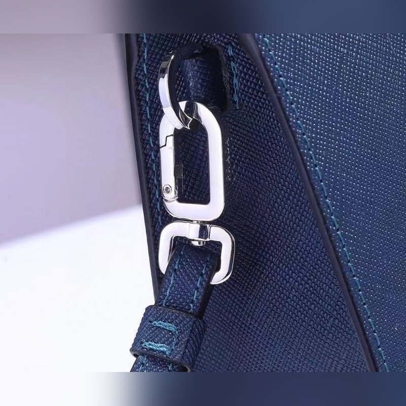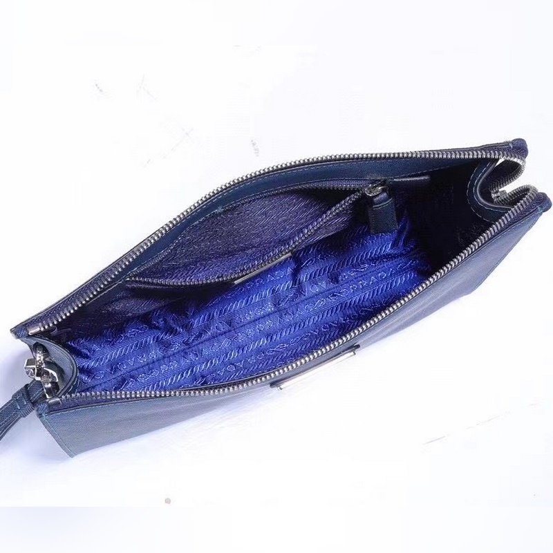 Eredeti doboz, a legújabb stílusú Prada férfi kézitáska pult, szinkronban a hivatalos weboldallal, eredeti fejlesztés, modell 2NE007, szín: kék-fekete / háromszög jel, belső kódos vászoncímke 165 OEM kód, kiváló textúrájú felső olasz keresztszemcsés marhabőr, belül importált speciális szövet, sima sima, importált fehér acél kézi tartozékok, exquisite hardver tartozékok, igényes kidolgozás, a képen látható méret: hossza 24cm magas 18cm szélesség 6,5cm