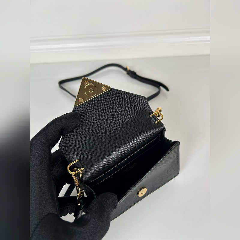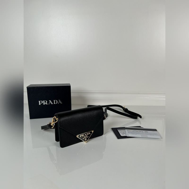 P Home Női multifunkcionális mini hátizsák, 1MR033-as modell, kihajtható Saffiano bőr vállpánttal, füles kártyatartóval, fém háromszög mikrologóval elöl, 11,5 x 8 x 2,5 cm-es méret, két kártyanyílás a belsejében, mini hátizsák nyáron, és kisméretű kártyatartóvá alakítható, Strapactic kártyatartóval, szuper kis kártyatartóval. Miután