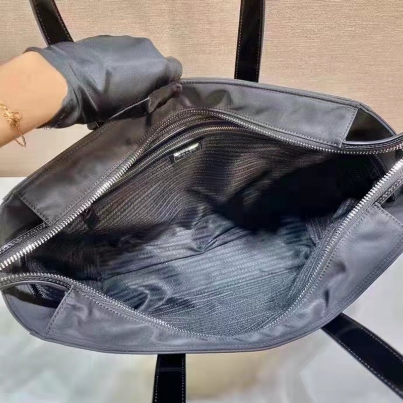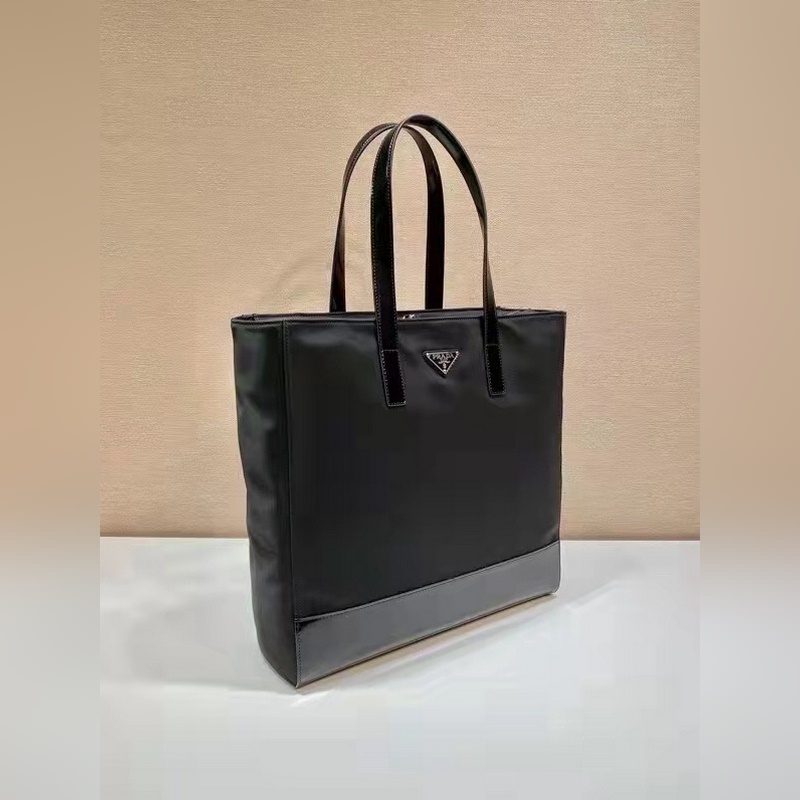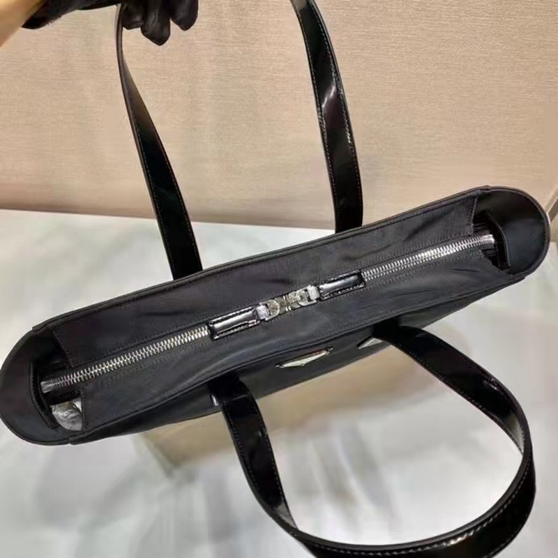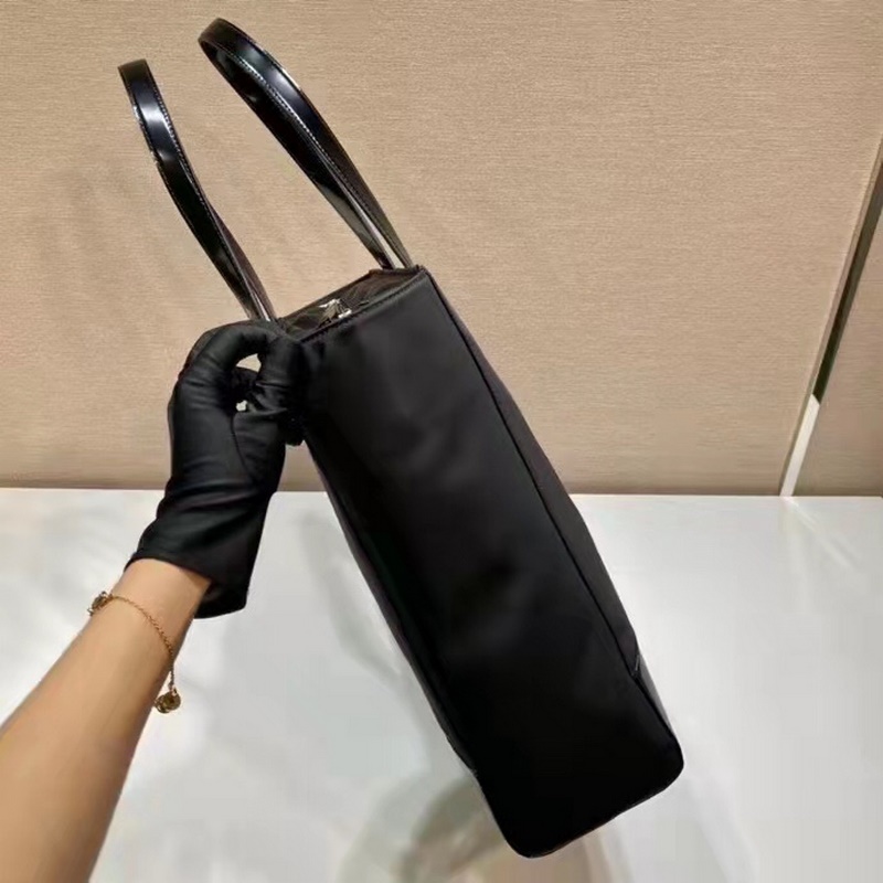Ez a Re-Nylon kézitáska két különböző anyagból, fényes marhabőr fogantyúból és nylon anyagból készült. Egy másik divatos fazon, zománcozott fém háromszög logóval az elején, cipzárral záródó belső cipzáras zsebbel, könnyű és stílusos, siess és szerezd be.