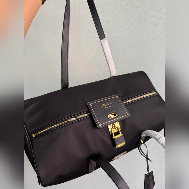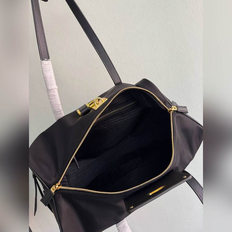 A re-nylon kialakítása életre kel, funkcionális részletekkel és bőrborításokkal. Ez a tágas tartozék ikonikus zárral rendelkezik, amelyet utazási csomagtartók ihlettek. Bőr fogantyúk Kivehető bőr kulcstartó Oldalsó cipzáras zseb Fém vasalat Zománcozott fém háromszög logó az elején Cipzár zárás zárral Logóval nyomott Re-nylon belső, dupla cipzáras zseb