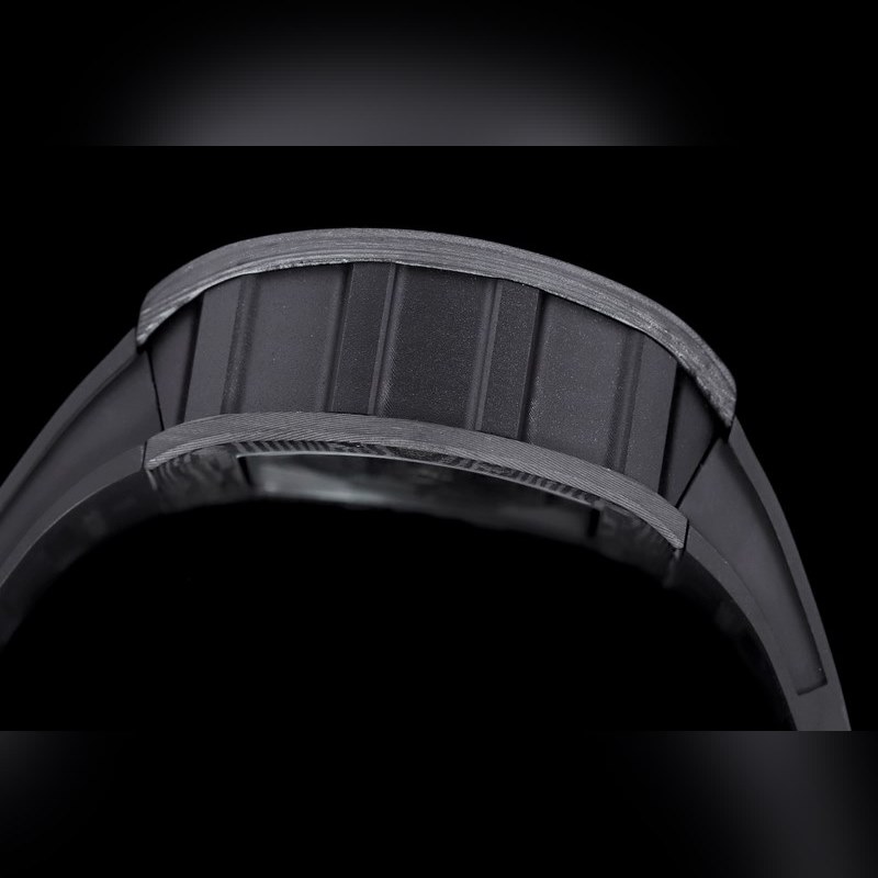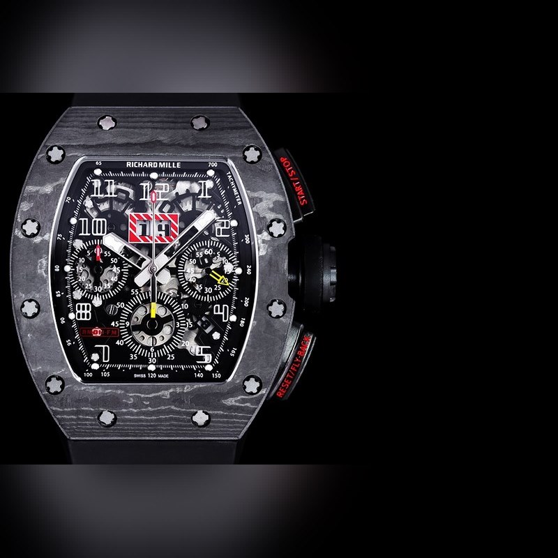 Szénszálas anyag visszaadja az eredeti textúrát Kiváló minőségű eredeti fekete kerámia A fehér kerámia visszaadja az eredetit A tökéletes ergonomikus kialakítás egybeesik a márka tökéletességre való törekvésével. Az RM 011 minden alkatrésze funkciójának esztétikai kifejeződése. Az RM 11-FM óra megőrizte a legfelismerhetőbb ikonikus formát, de a felhasznált kivitelezés még messze túlmutat a múlton. A tokhoz a titán fazon látható a képen, de választhatunk rózsarany és titán változatok közül is, de mindegy melyik, mindegyik finoman kidolgozott szálcsiszolt felülettel rendelkezik, amihez csiszolt letörések párosulnak, ami éles kontrasztot mutat. A 7750-es kronográf mechanikus szerkezettel felszerelve, jól láthatóan funkcionális betűtípusokkal (Start/Stop és Reset/Fly-back) jelölve, kialakítását az F1-es versenyautók pedáljai ihlették. Mindezek az optimalizálási változtatások sportosabbá és divatosabbá teszik ezt az RM 11-FM flyback kronográf automata órát, mint a korábbi stílusok.