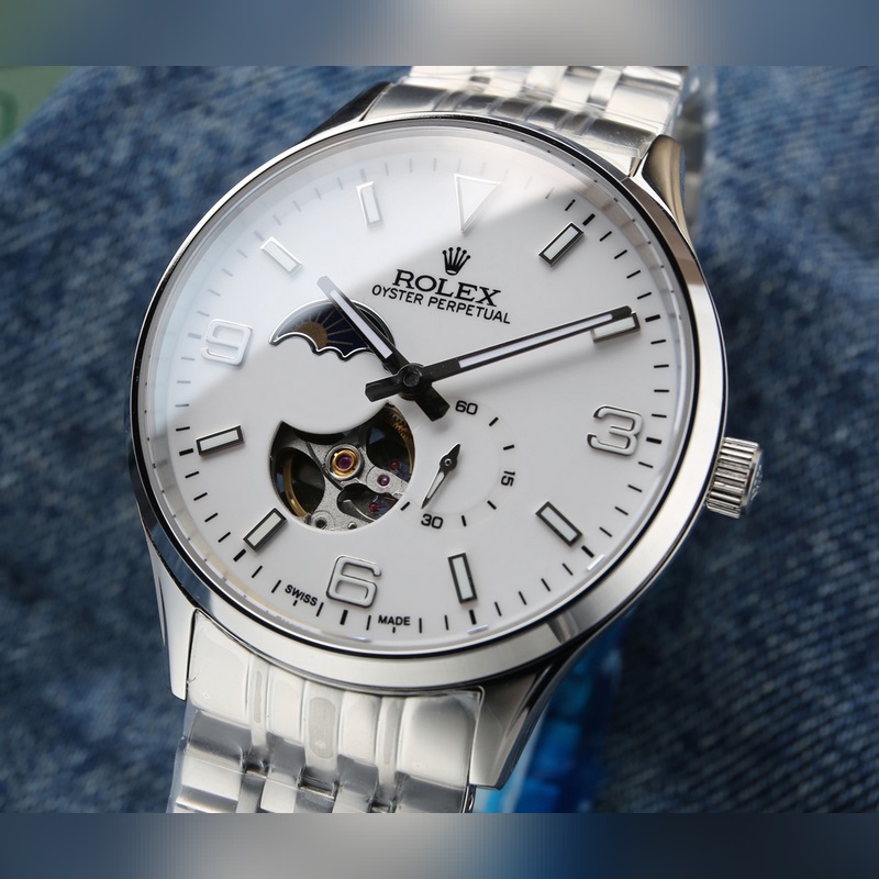 Rolex, Sun, Moon és Stars sorozat, az eredeti importált 82S7 szerkezettel (0 javítás és 0 vevőszolgálat), szuper-A rozsdamentes acél tokkal (finom kidolgozás, vízálló, 5 fokig vízálló) 5 fokig importált kannával. (finom kidolgozás és hibátlan, természetes fényben nagyon rétegzett, vakító.) 9 számjegyű személyre szabott 24 órás/valódi holdfázis kijelző, üreges kivitel, a mozgás működése akadálytalan, 5 számjegyű kis másodpercek. Dupla bo zafír üveg tükör, szuper fényhatású, olasz marhabőr, óraátmérő 40X11m. 5 fokos vízállóság