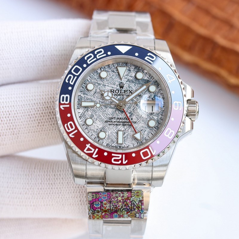 Egy darabból álló piros és kék kerámia előlap, az egyetlen olyan kerámia keret a piacon, amely az eredeti színével megegyező, csúcstechnológiás galvanizált betűtípusokkal, nem fakul, 904L acél, a második rétegen az autentikus GMT tű található, a naptár pedig mechanikusan beállítható gyorsbeállítási idővel3 mm, 3,8 2836 automata mechanikus szerkezet, 904L acél ház és karkötő, zafír tükör, szuperfényes, kétirányú kerámia forgó előlap, összecsukható kapocs.