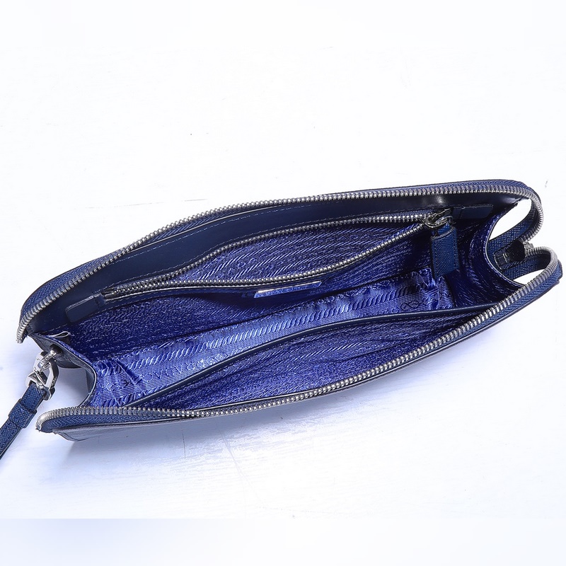 Saffiano bőr férfi új kuplung, számláló szinkronizációs 2VF056 dombornyomású levehető csuklópánt, polírozott acél tartozékok, elöl dombornyomott mikrofon logó, importált keresztezett marhabőr nylon béléssel, 6 kártyanyílás, hossz 27 cm x magasság 17 cm x szélesség 5 cm