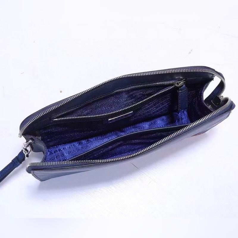 Saffiano bőr férfi új kuplungtáska, számláló szinkronizációs 2VF056 dombornyomott selyemszita levehető csuklópánt, szálcsiszolt és polírozott acél tartozékok, elől dombornyomott mikrofon logó, importált keresztirányú marhabőr nylon béléssel, 6 kártyanyílás, hossza 27 cm x magasság 17 cm x szélesség 5 cm,