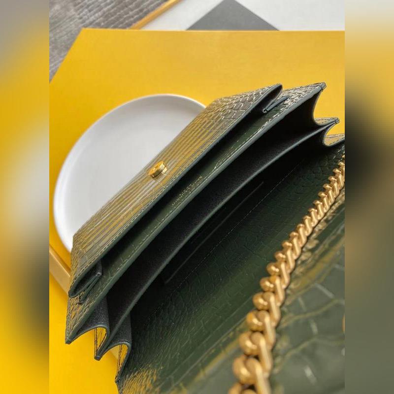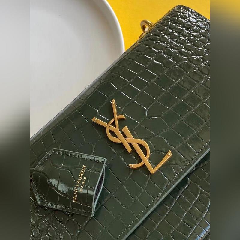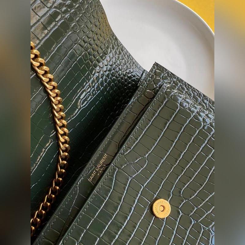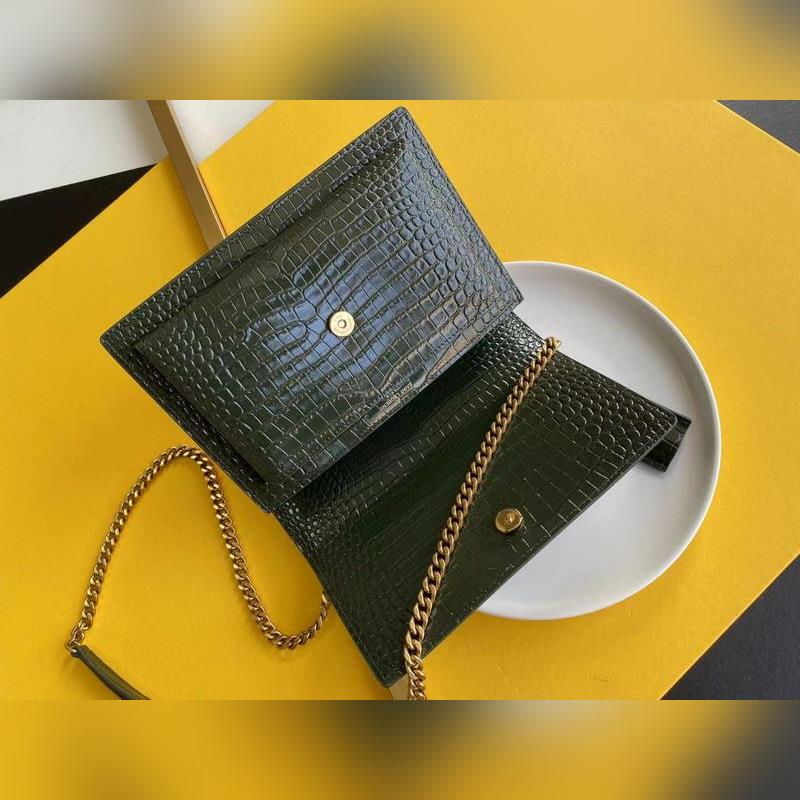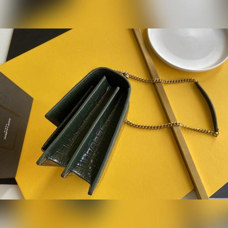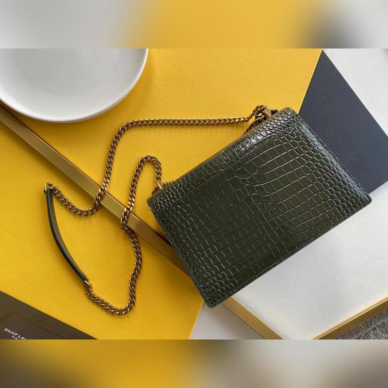 SYSL Crocodile Pattern SUNSET BAG Láncos kereszttestű táska, nagy modell: 442906 Green Crocodile Gold Buckle