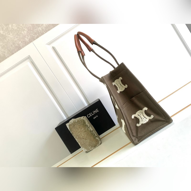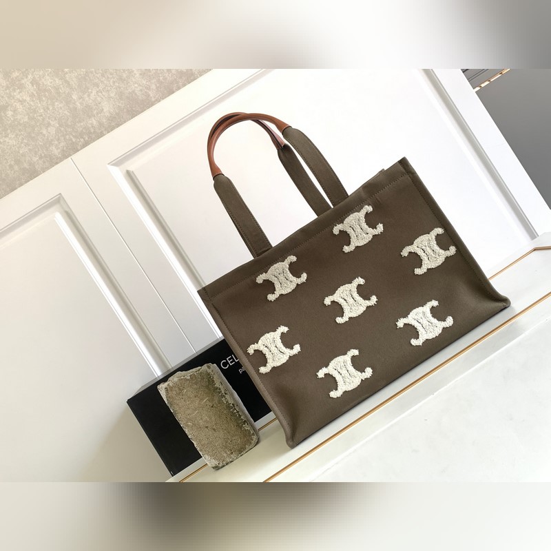 A legújabb őszi-téli sorozat~Négyzetes sötétbarna nagy logós betűs kézitáska-sötétbarna vászonvarrás marhabőr fogantyú~Arc de Triomphe frottír hímzéssel~Egy visszafogott és ízléses bevásárlótáska~Tipikus nagy bevásárlótáska forma, nagyon nagy, könnyen hordozható és könnyen összeilleszthető