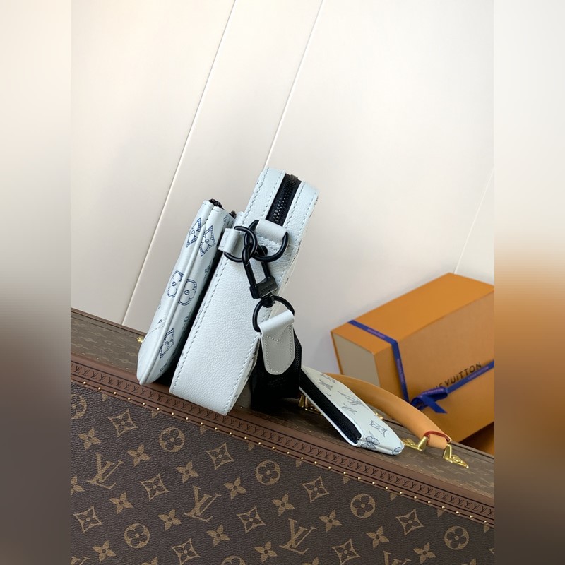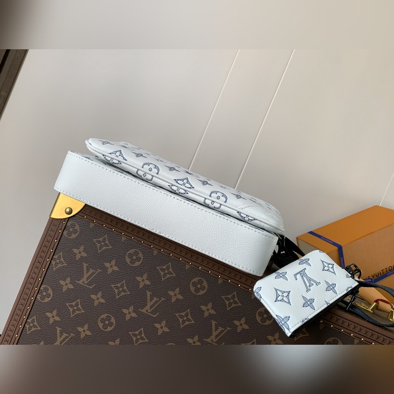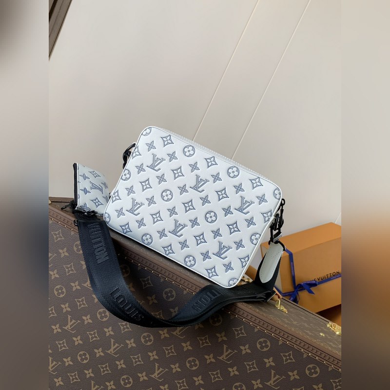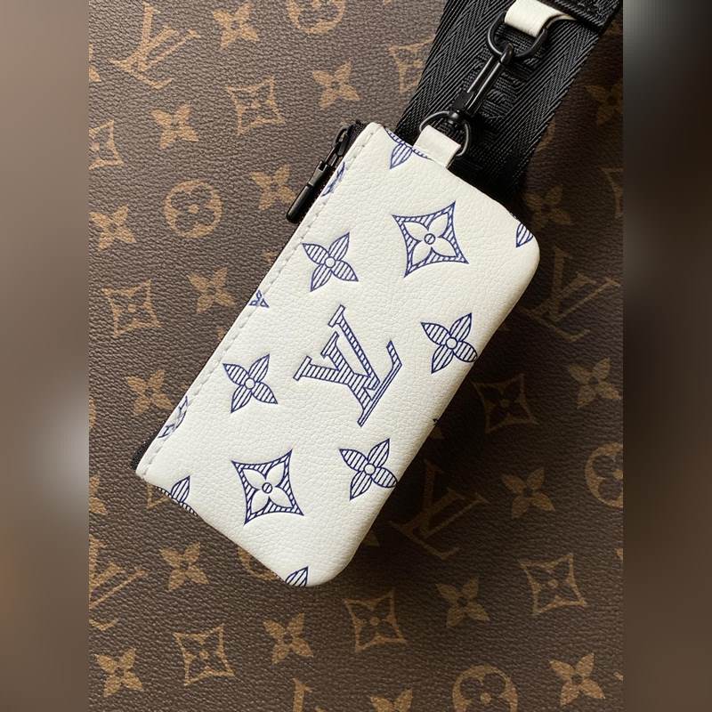 Csúcsminőségű eredeti egychipes kódváltó chip Exkluzív real shot M24754 Beige Ez a Trio futártáska Monogram dombornyomott marhabőrbőrből készült. A cipzáras elülső zseb és a vállpánton található kis érme pénztárca levehető, ami a fő rekesszel együtt gazdagítja a funkcionális kialakítást. A levehető és állítható jacquard szövet vállpántot a márka logója jelzi, így kényelmes viselet vállon vagy keresztben. Mérete: 25×18,5×7 cm