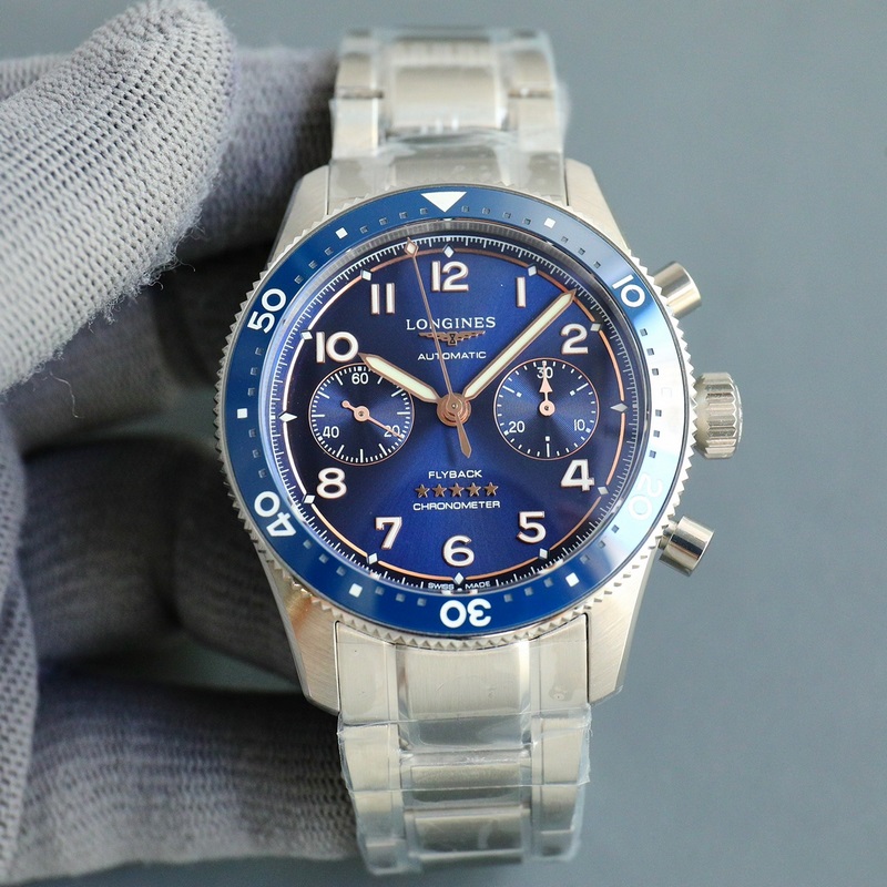 2 A számlap fekete és kék színű, 3 másodperces, számlappal. 9 órakor tárcsázni, középen egy nagy kronográf másodpercmutató. A “FIyback” flyback funkció 6 órakor van jelölve a számlapon, ami egy nagyon kényelmes kronográf.