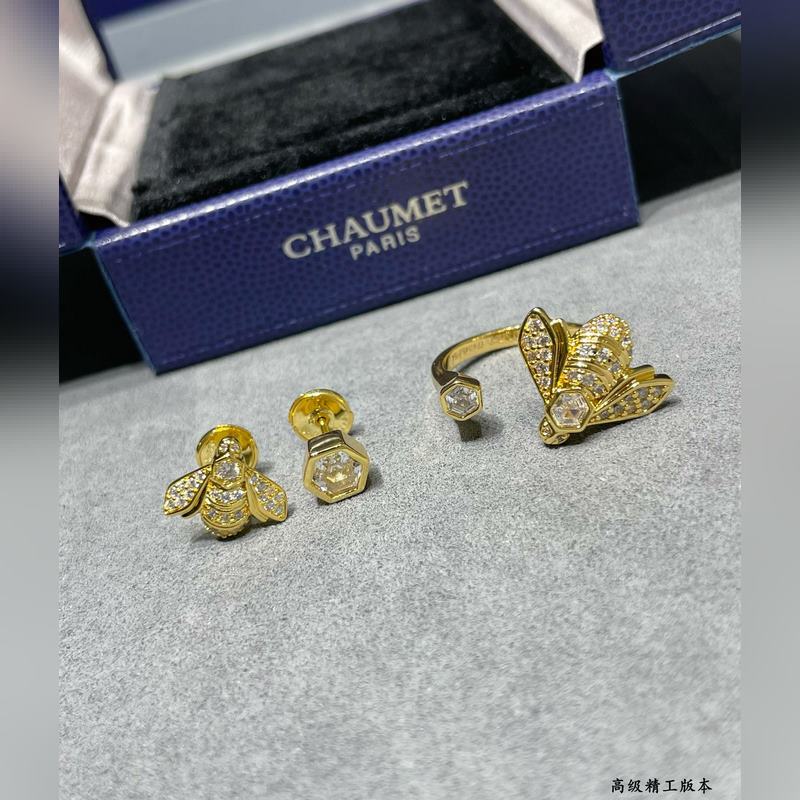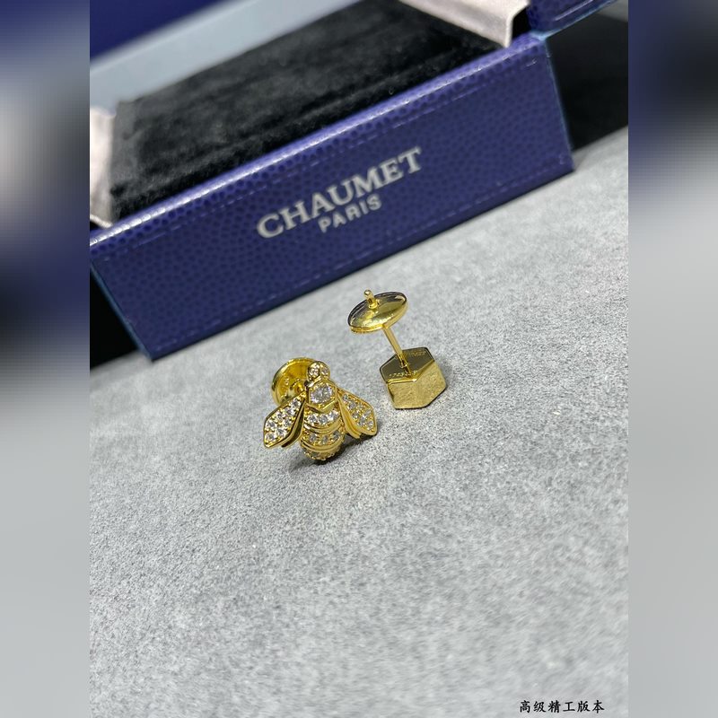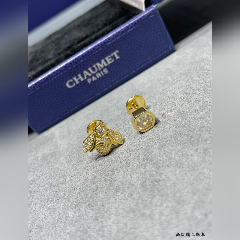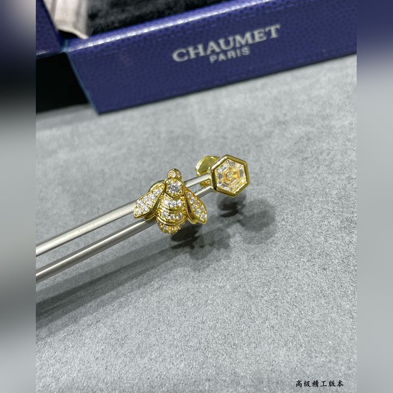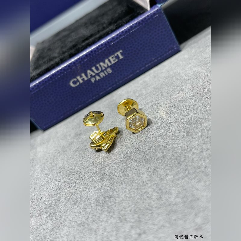 V arany anyagú 2110160 Chaumet méh fülbevaló, a népszerű arany méh fülbevaló is az aszimmetrikus dizájn koncepciót használja mindkét oldalon, plusz a Chaumet egyedi hatszögletű, dáma csiszolású gyémántjai, 88 fazettával, vakító fényt sugározva.