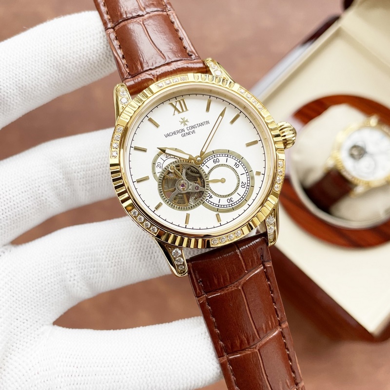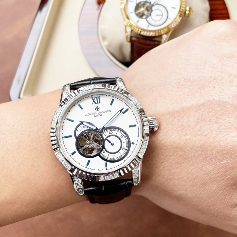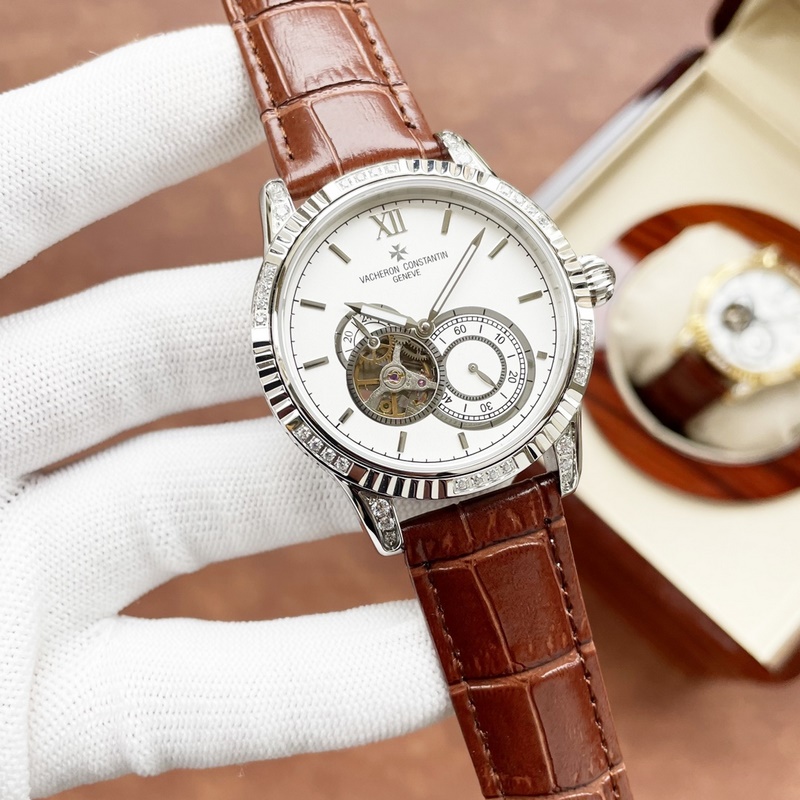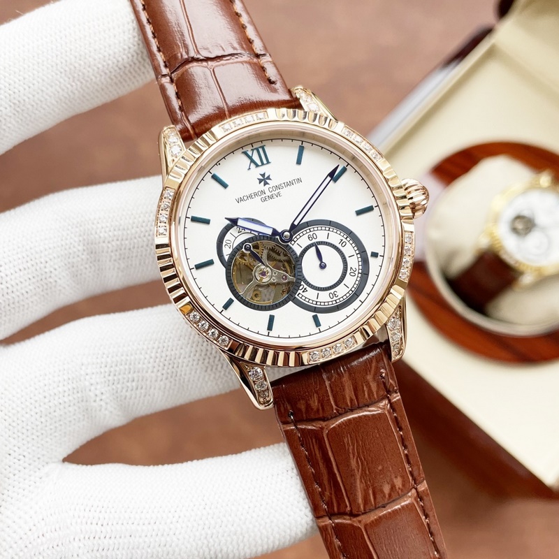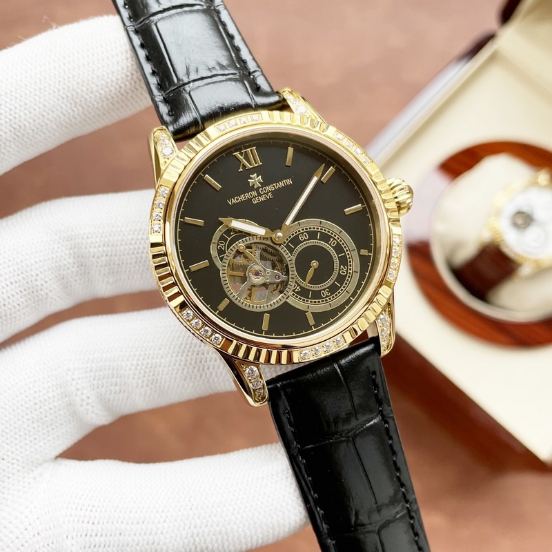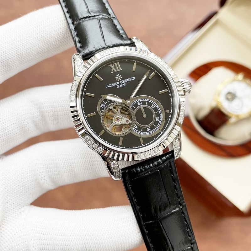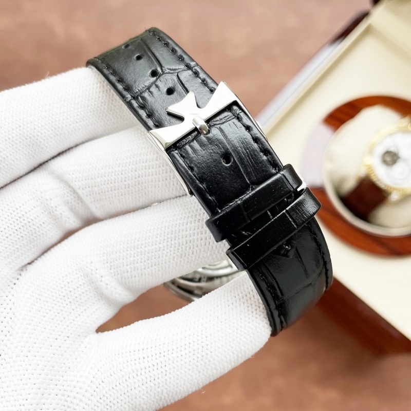 Vacheron Constantin férfi karóra, többfunkciós dizájn, igényes kivitelezés, eredetiség, nemes hangulat, úri stílus. Teljesen automatikus mechanikus mozgást alkalmaz, felső 316 rozsdamentes acél ház, importált borjúbőr szíj, ásványi szupertükör, 43-13 méret