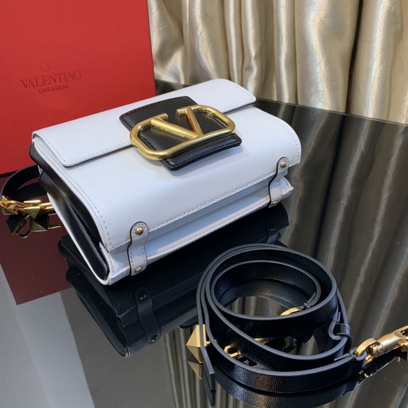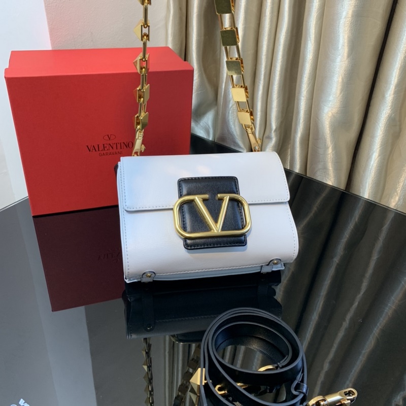 Valentino szemcsés borjúbőr válltáska dekoratív fémmel és ikonikus, túlméretezett szegecsekkel díszített láncpánttal