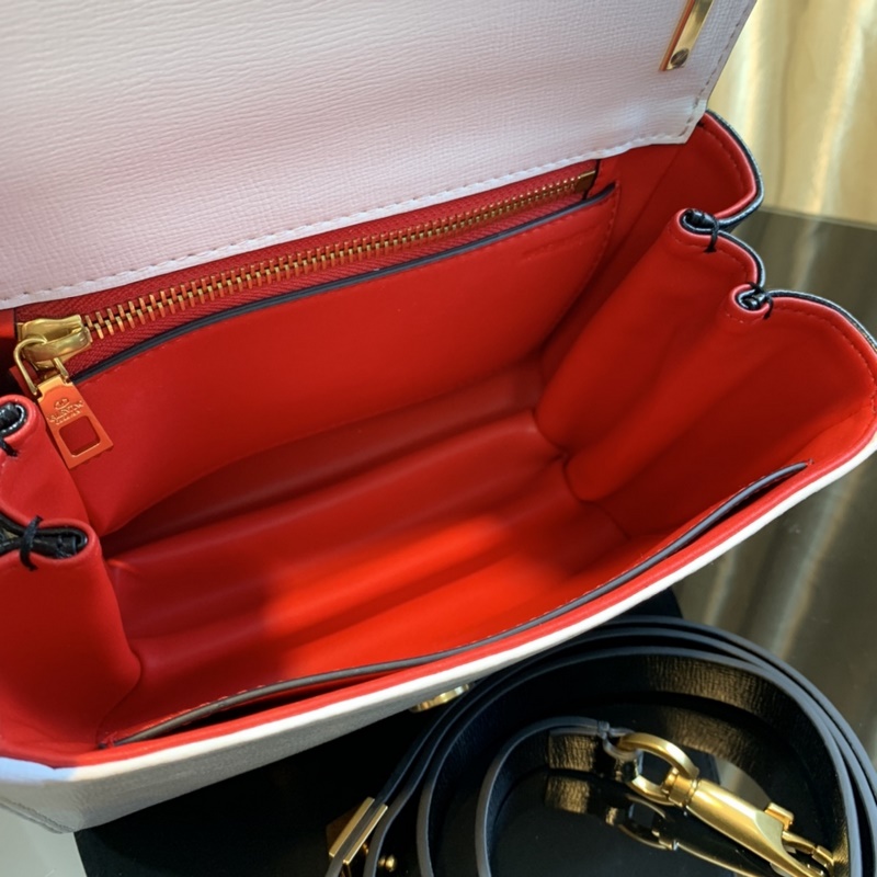 Antik sárgaréz szegecsekkel díszített vasalat- Mágneses kapocs- Vállpánt levehető láncpánttal- Állítható és levehető bőr vállpánt- Láncpánt magassága (a táska függőleges magassága 5 cm-től középponttól a tetejéig): középpont a táska tetejéig): 50 cm- Piros nappa bélés, belső: egy cipzáras zseb és egy nyitott zseb- Méretek: Szé 20 x Ma 15 x Mé 7 cm- Olaszországban gyártott- Cikkszám: WW0B0J96CPD0NO- Stílusszám: 0096 Kódszám: SX961812