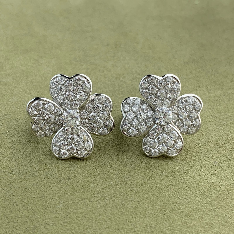 Van Cleef&Arpels Sweet Alhambra, négylevelű virágos, teljes gyémánt fülbevaló