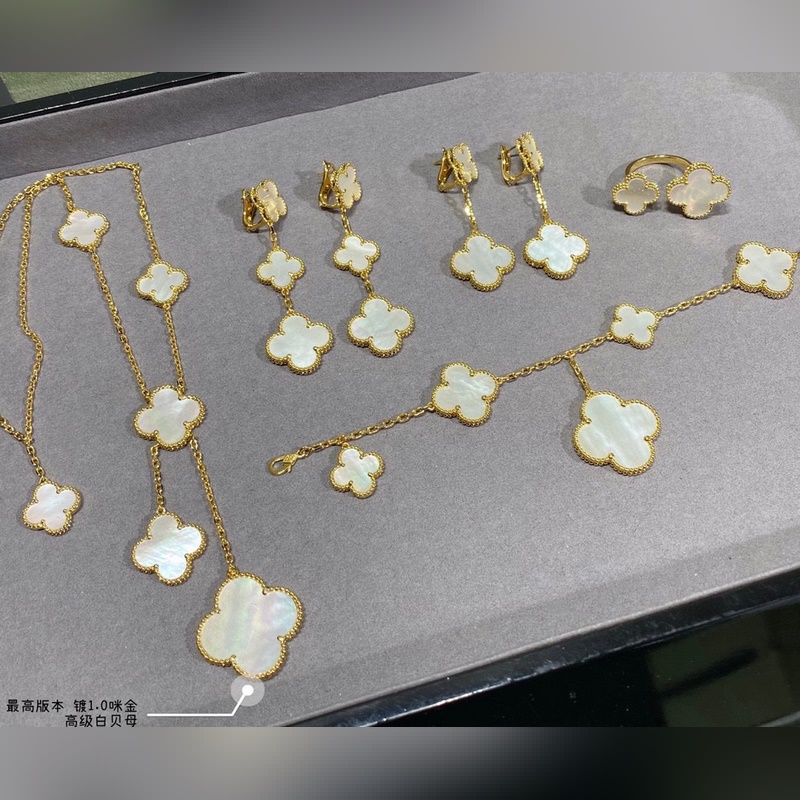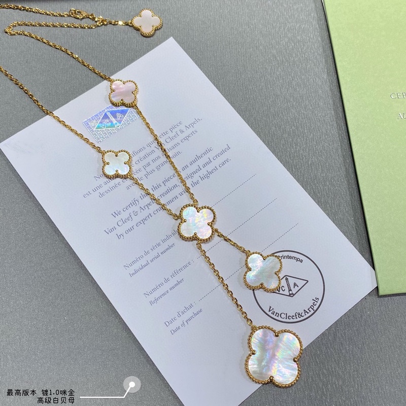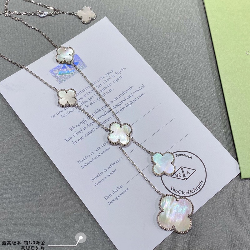Van Cleef&Arpels VCA négylevelű lóhere hatvirágú bojt fehér gyöngyház nyaklánc natúr kagyló achát szuper szép klasszikus stílus soha nem megy ki a divatból válogatott német import 925 sterling ezüst anyag eredeti logó zökkenőmentes precíziós változat igazi lövés jó minőség kifinomult kivitelezés a legjobban illik utcán sétáláshoz, bulihoz, esküvőhöz banquet top változat