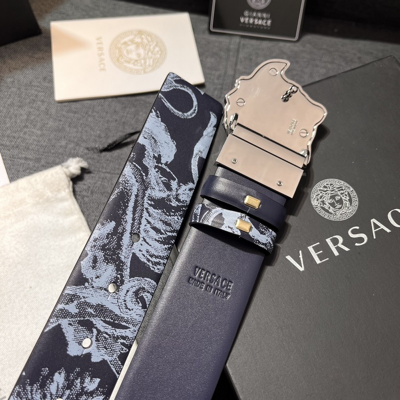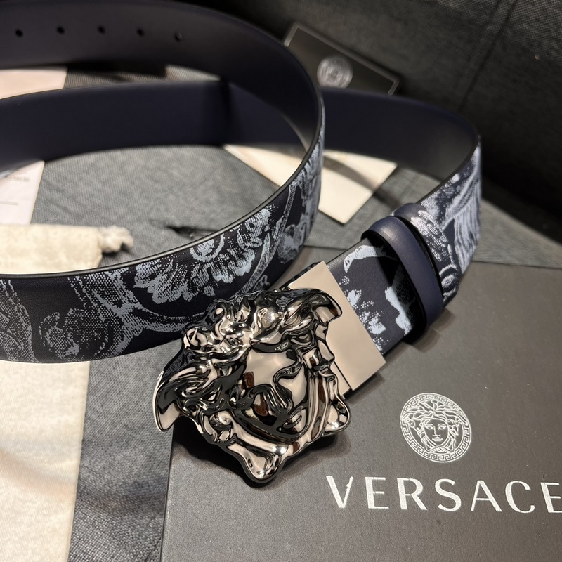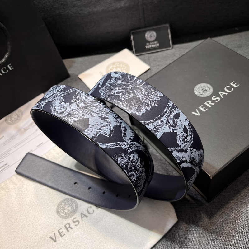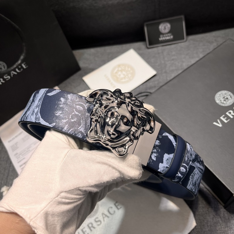 4cm, eredeti butik, 3D Medusa övcsat – Barocco print – anyag, felső réteg marhabőr, ez a sima Saffiano bőr öv Barocco mintával díszített. 3D Medusa övcsattal szállítjuk.
