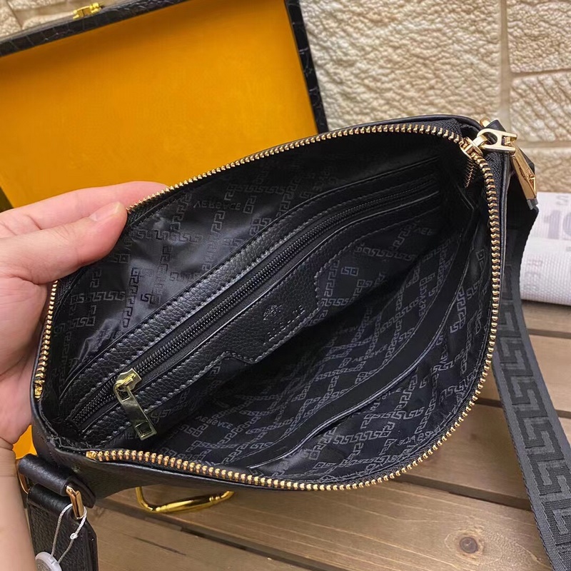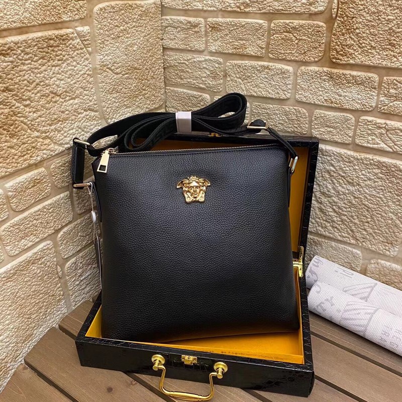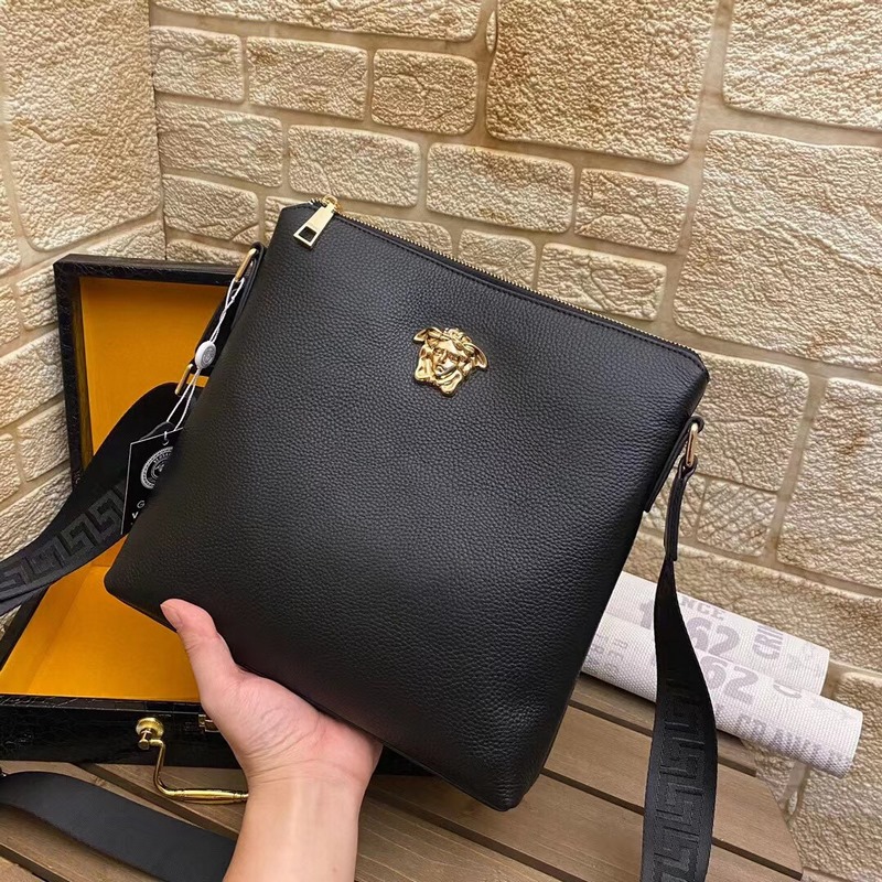 A súlyos pénzből megépített Versace Versaee férfi táska, aktatáska, kézitáska és futártáska ideális választás életerővel teli férfiak számára. Az eredeti hardver LOGO rendkívül világos. Az eredeti felső marhabőr minősége megkérdőjelezhetetlen, a kifinomult kivitelezés pedig abszolút erős. Mérete: 29-27-5cm.