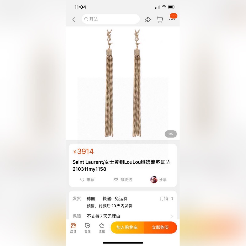 YSL Saint Laurent bojtos láncfülbevaló, merész és klasszikus dizájn, divatosabb, ha összeillesztjük, válasszon néhány ékszert, hogy ékesítse szépségét