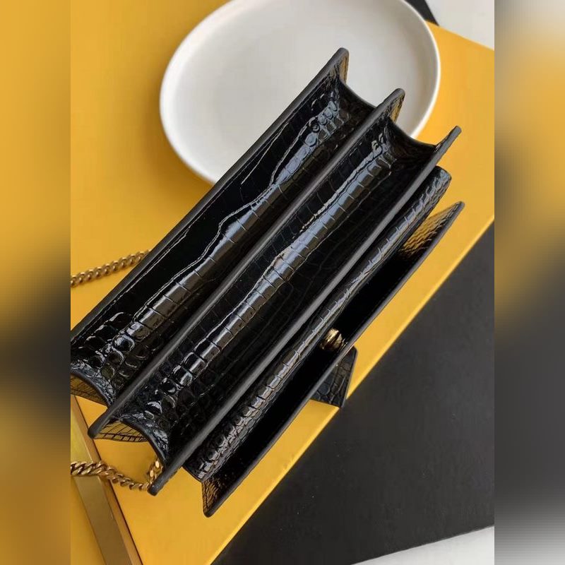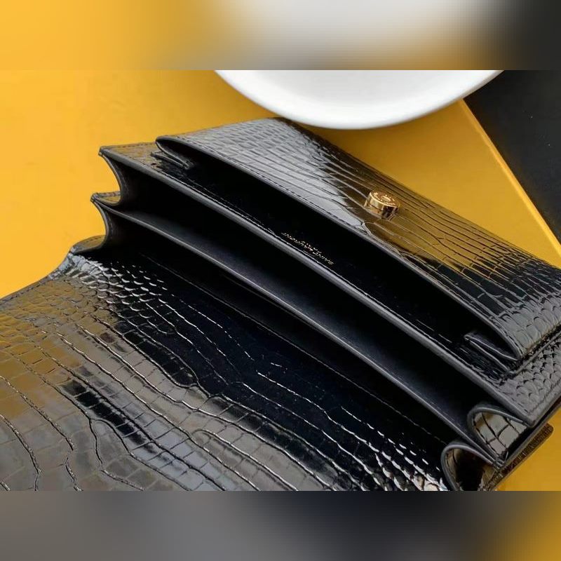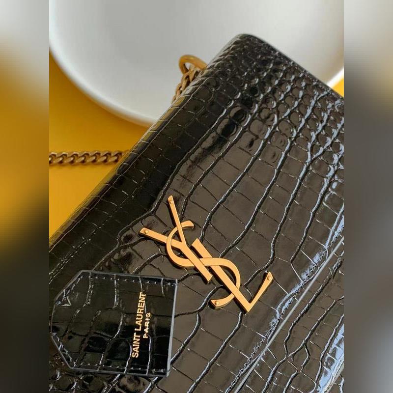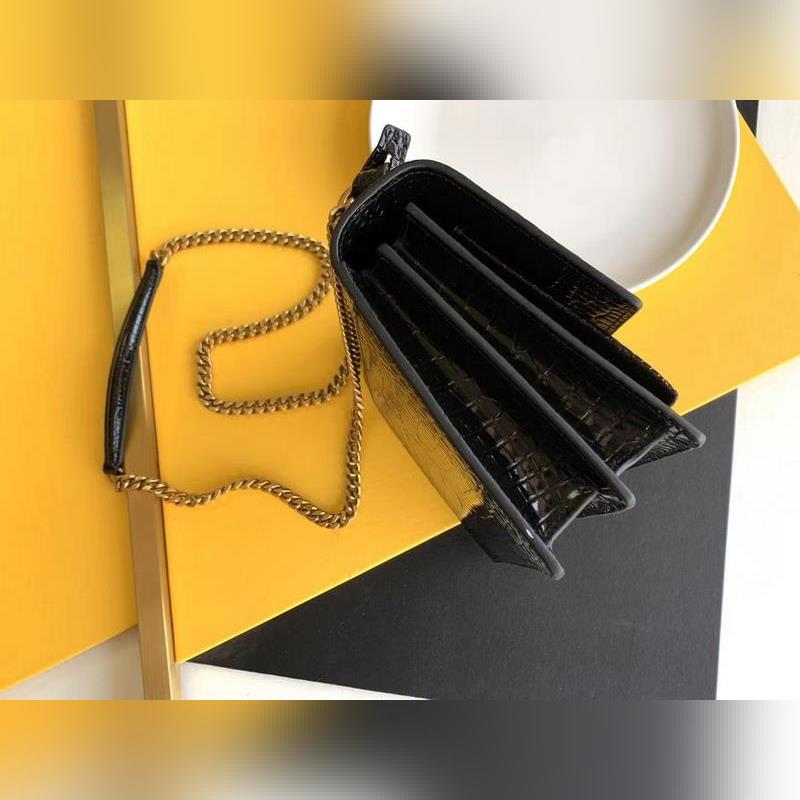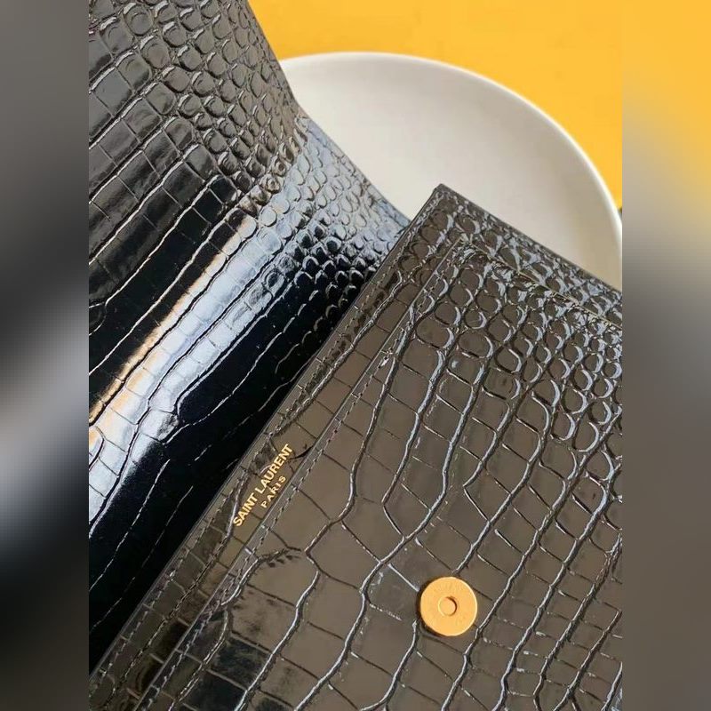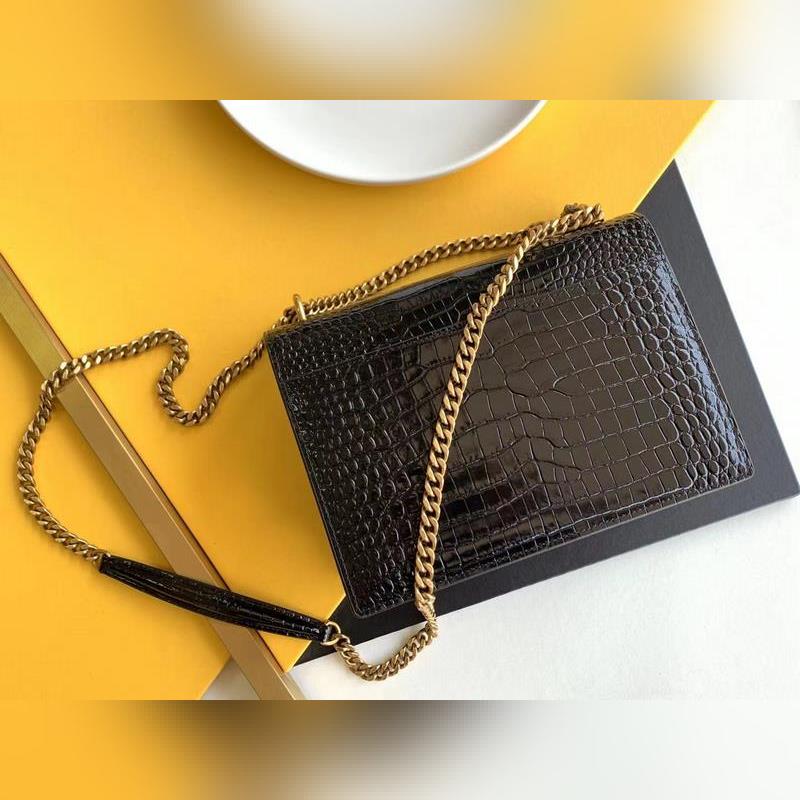YSL Crocodile Pattern SUNSET BAG Láncos kereszttestű táska, nagy modell: 442906 fekete krokodil arany csat