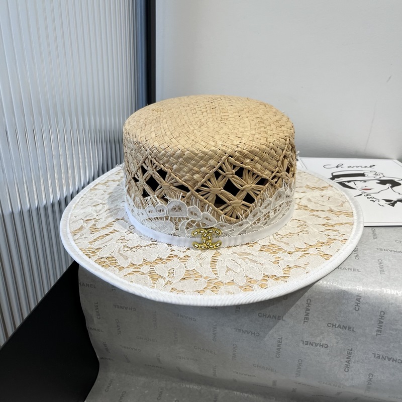 Chanel széles karimájú szalmakalap fényvédő Stílusos kivitel