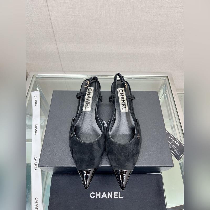 Chanel 23SS új klasszikus hegyes orrú hát nélküli szandál Kitten Heels-el