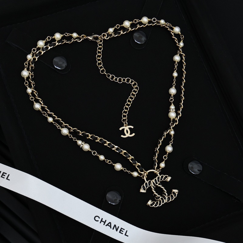 Chanel 24 karátos fekete arany dupla rétegű gyöngy nyaklánc Vintage Mysterious Elegance