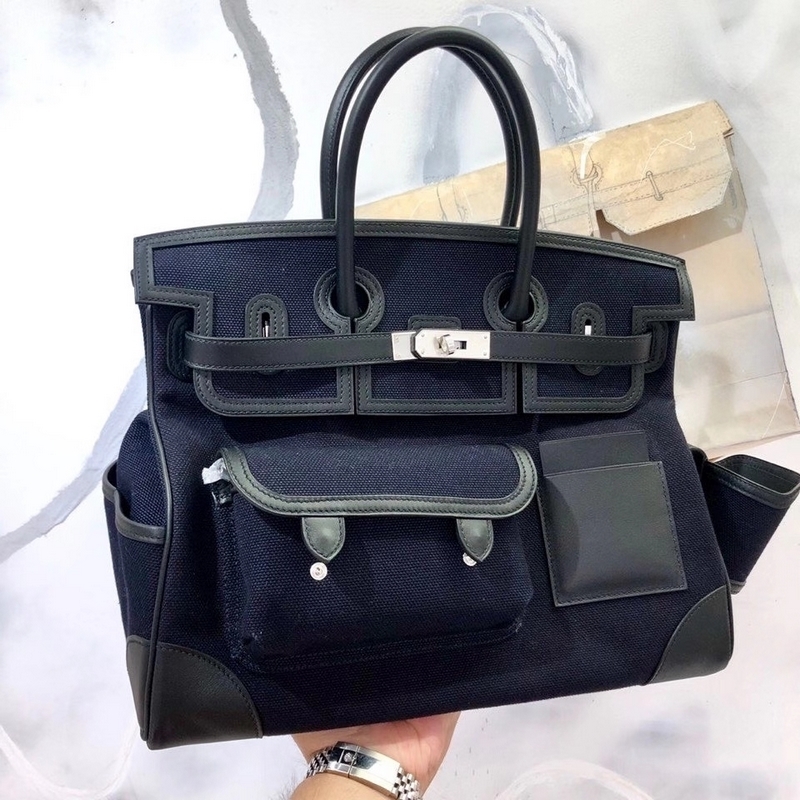 Hermès Birkin Replica Bag Cargo Deep Blue ezüst hardver