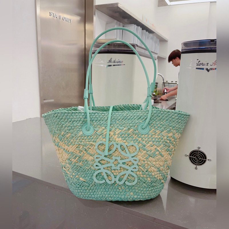 LOEWE Raffia szalmakalap és kézi szövésű táska nyári strandon